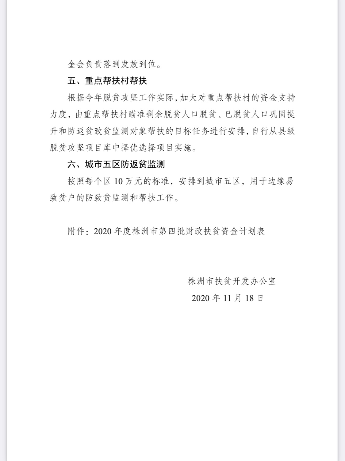 关于下达株洲市2020年第四批财政扶贫专项资金计划的通知
