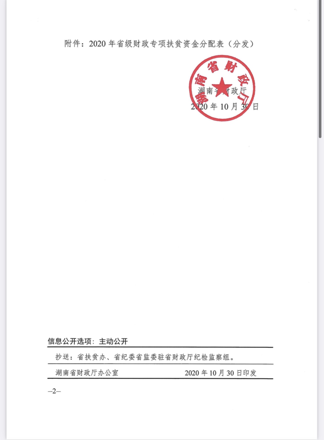 湖南省财政厅关于下达2020年省级财政专项资金的通知