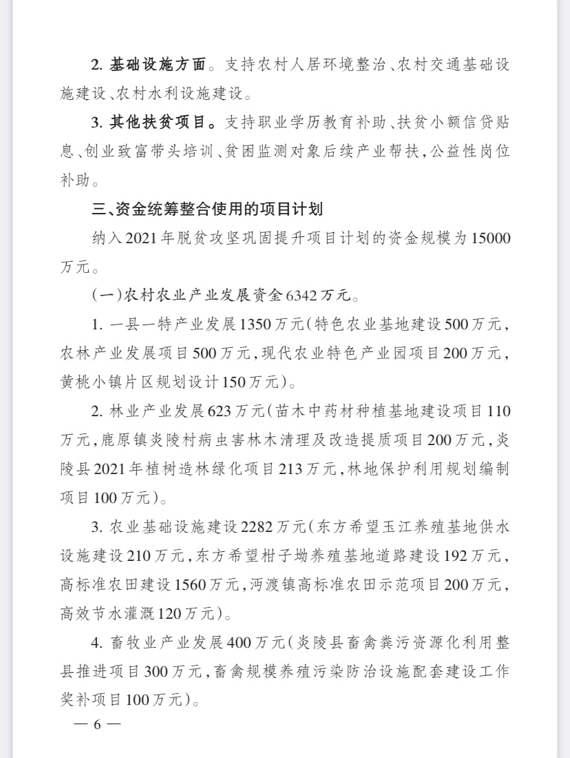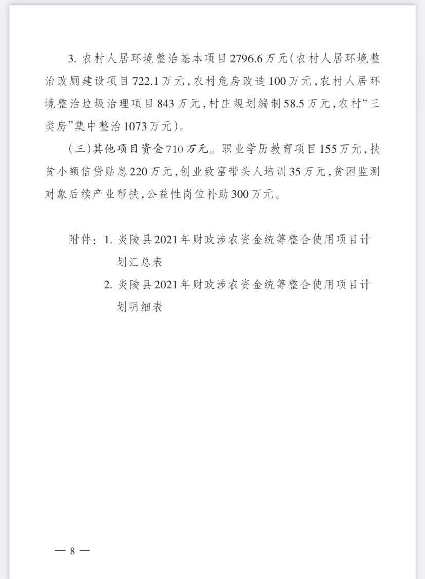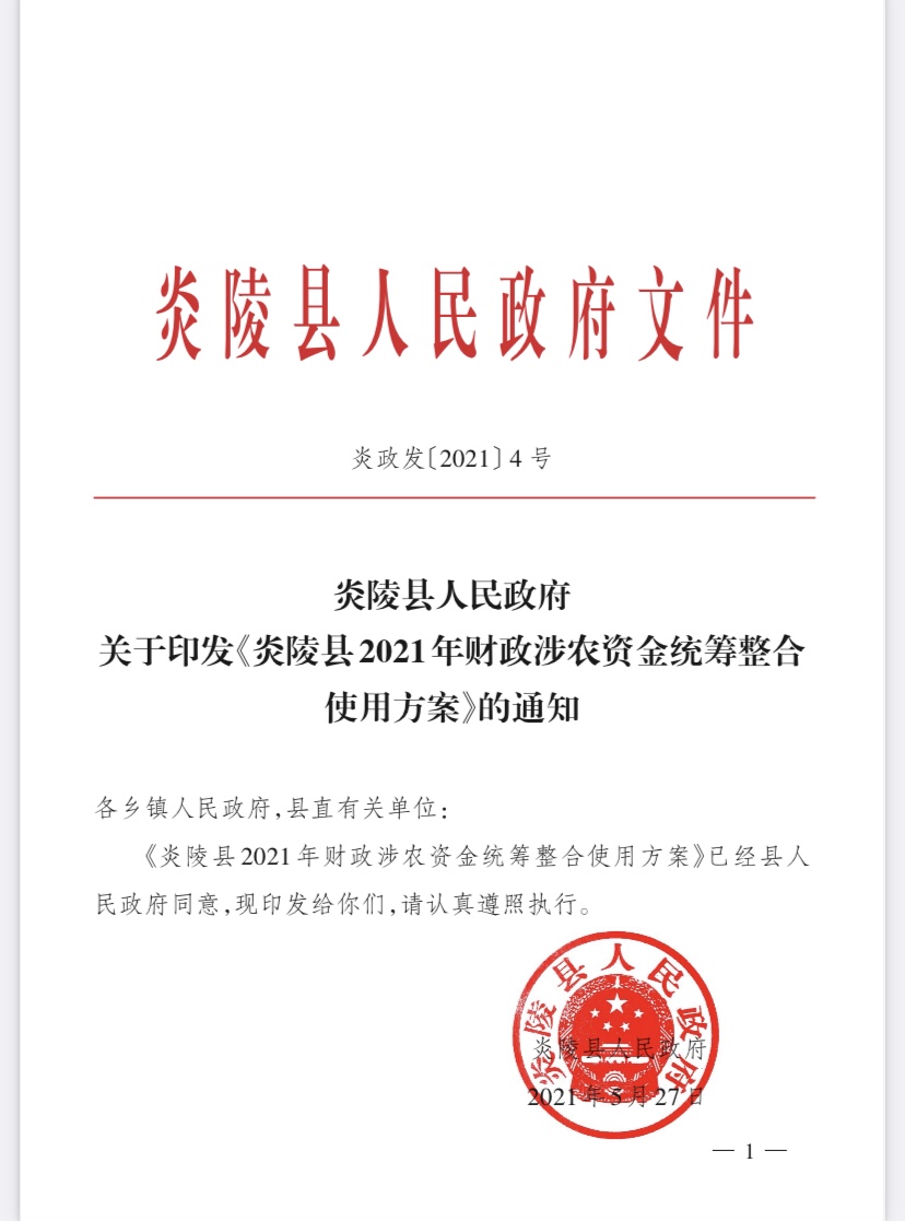 附件:关于印发《炎陵县2021年财政涉农资金统筹整合使用方案》的通知(炎政发[2021]4号)
