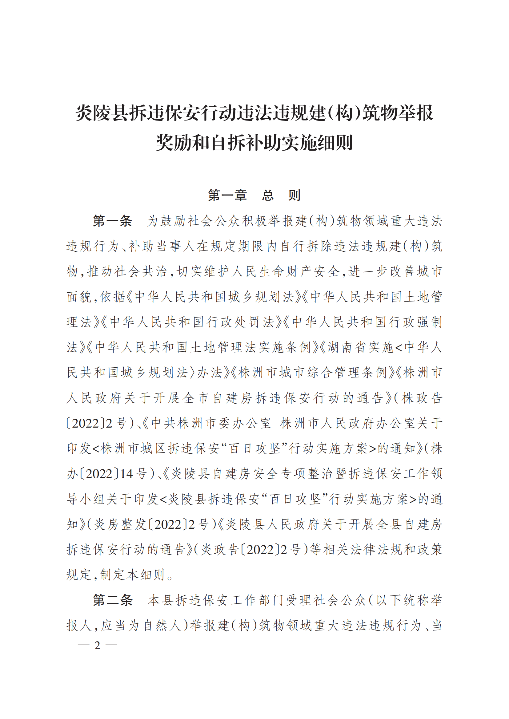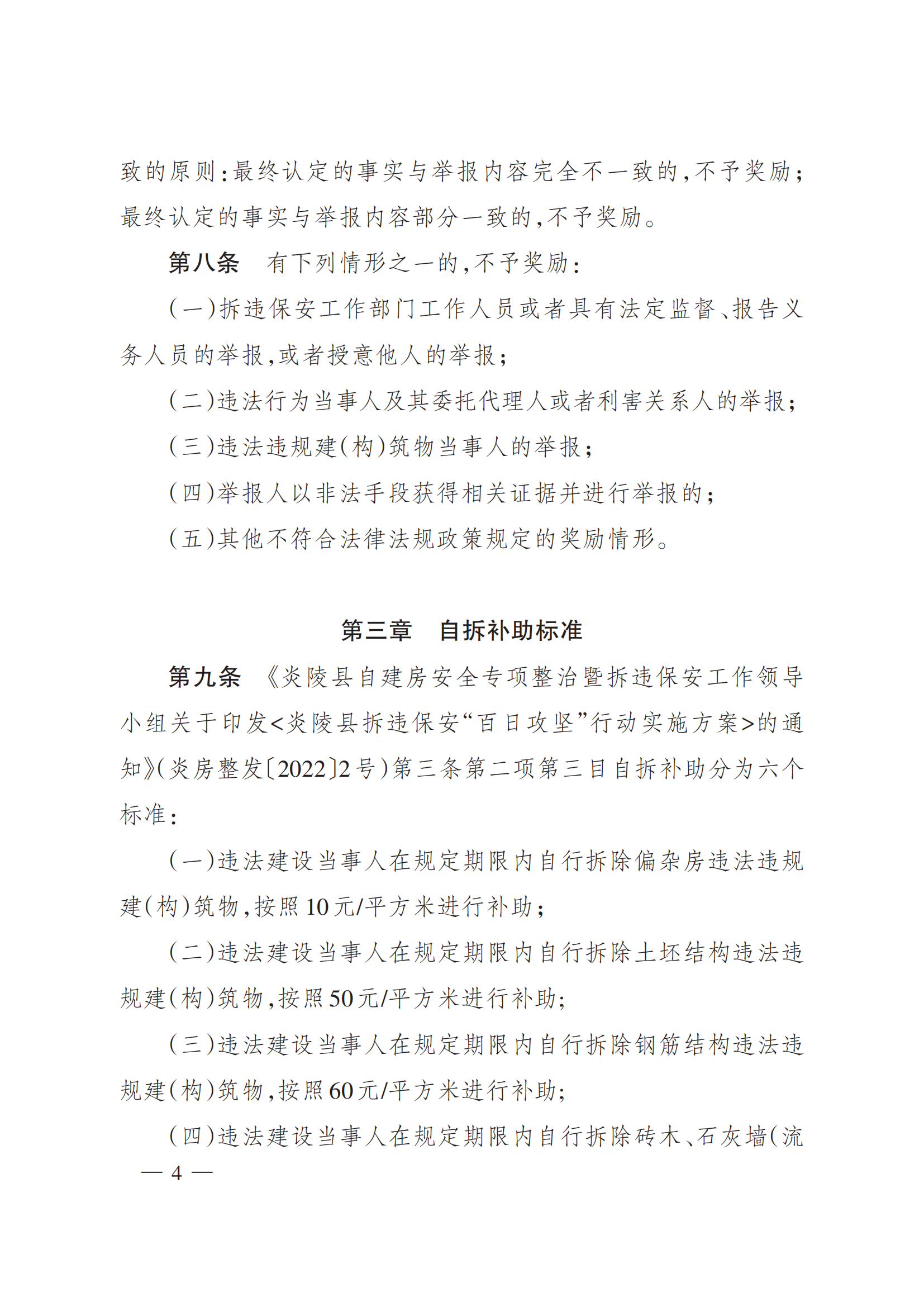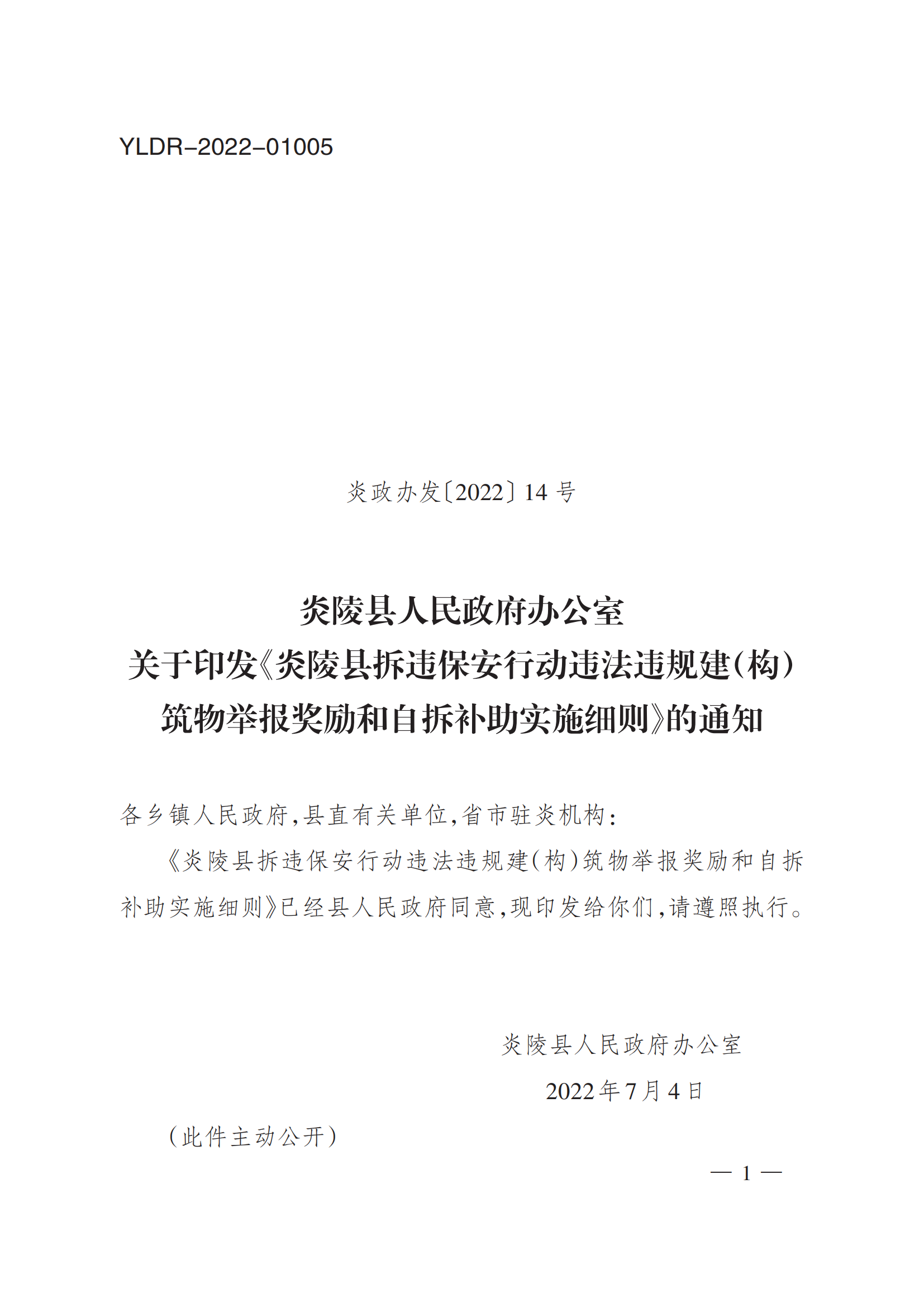 炎陵县人民政府办公室关于印发《炎陵县拆违保安行动违法违规建(构)筑物举报奖励和自拆补助实施细则》的通知