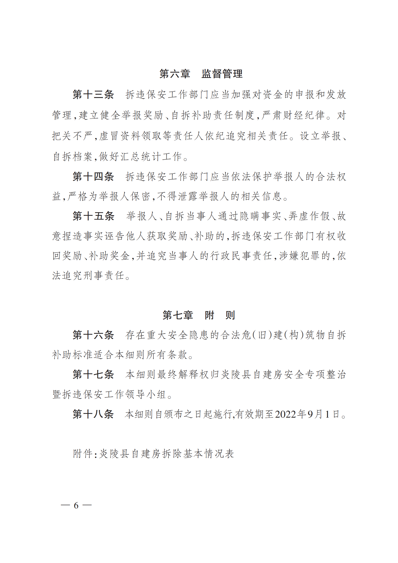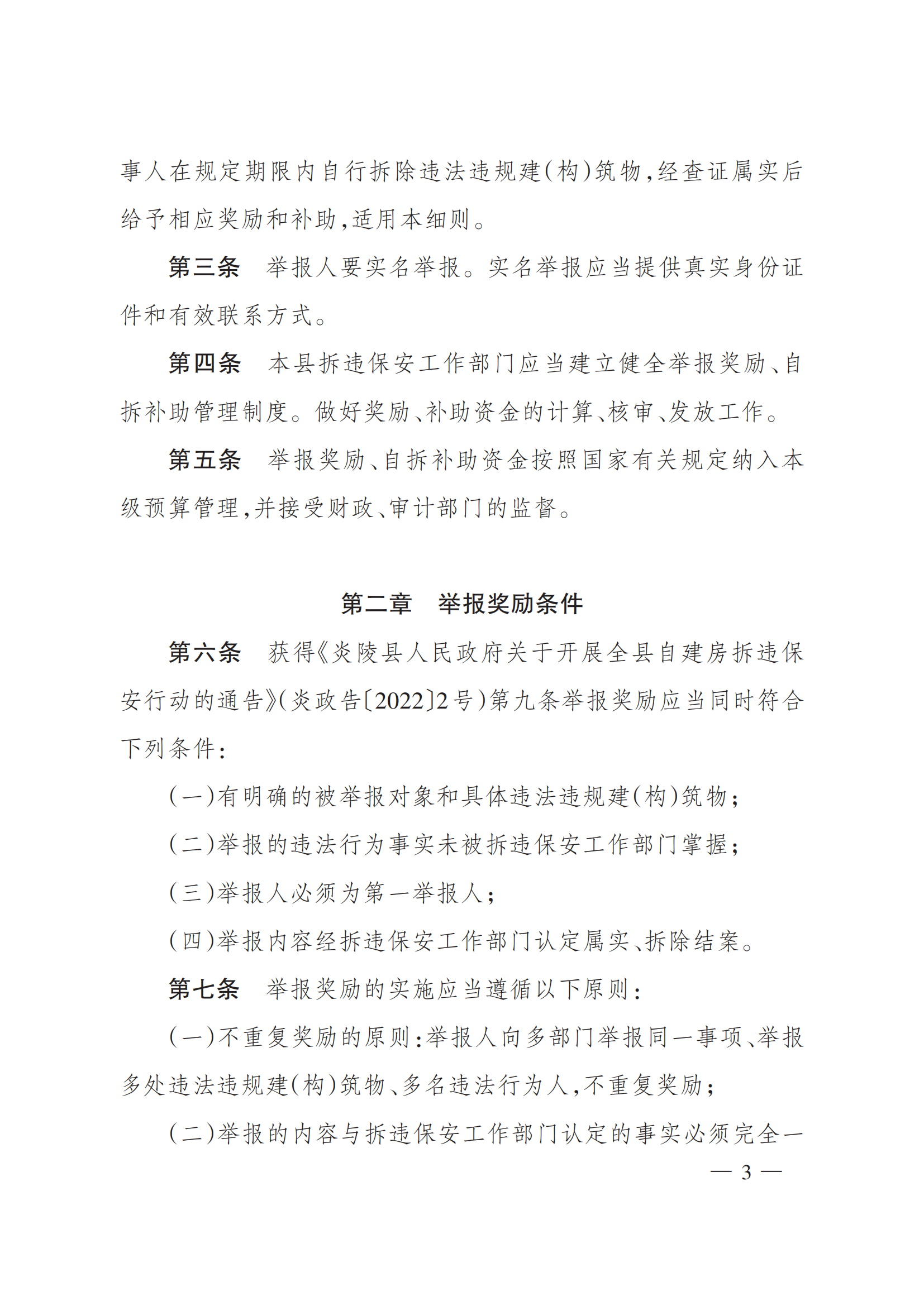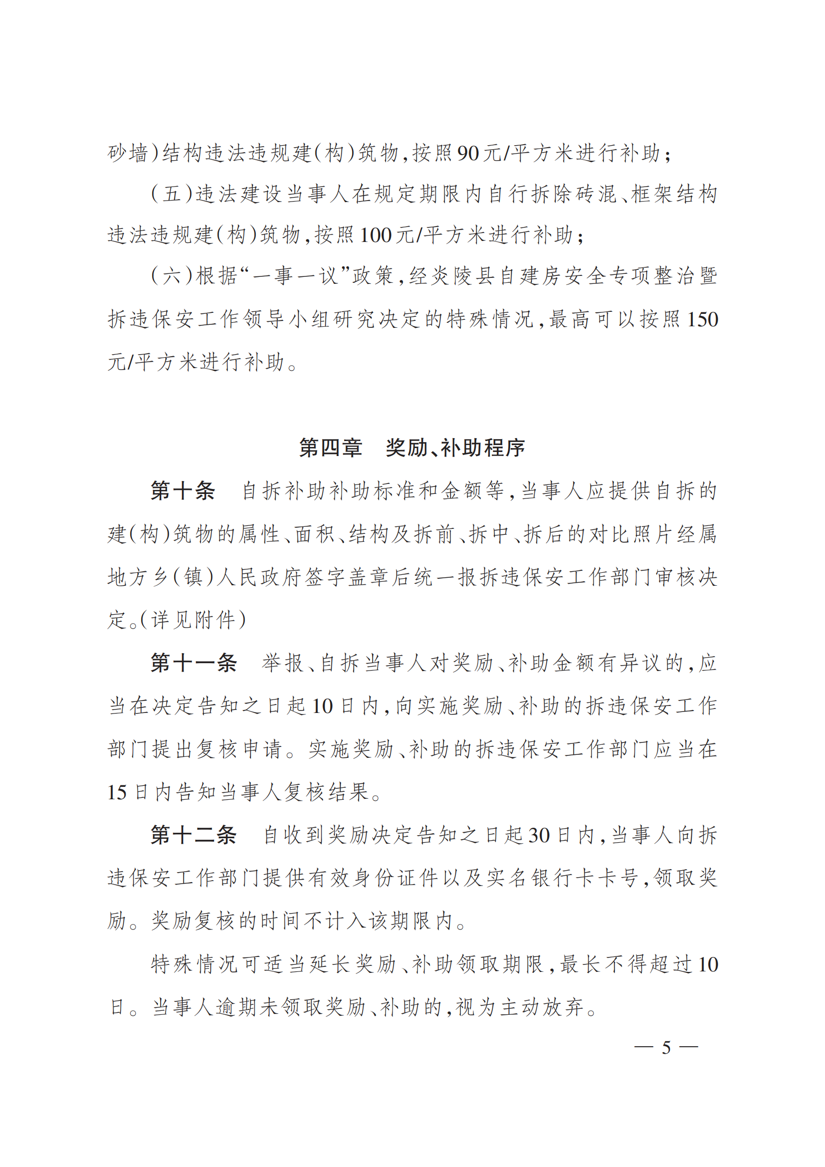 炎陵县人民政府办公室关于印发《炎陵县拆违保安行动违法违规建(构)筑物举报奖励和自拆补助实施细则》的通知