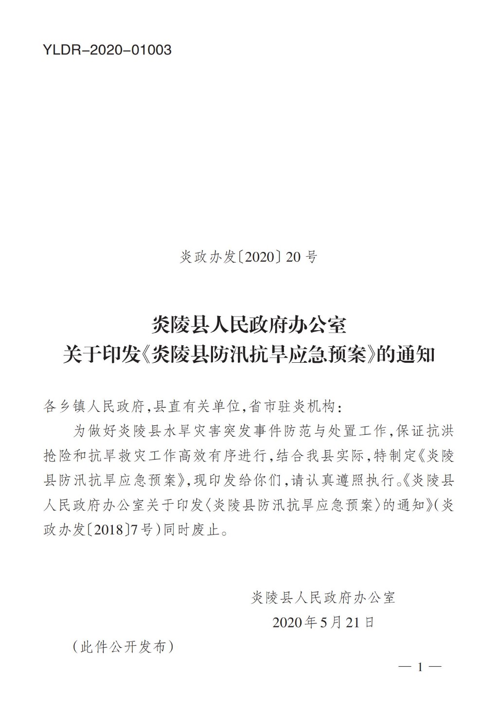 文件下载:关于印发《炎陵县防汛抗旱应急预案》的通知