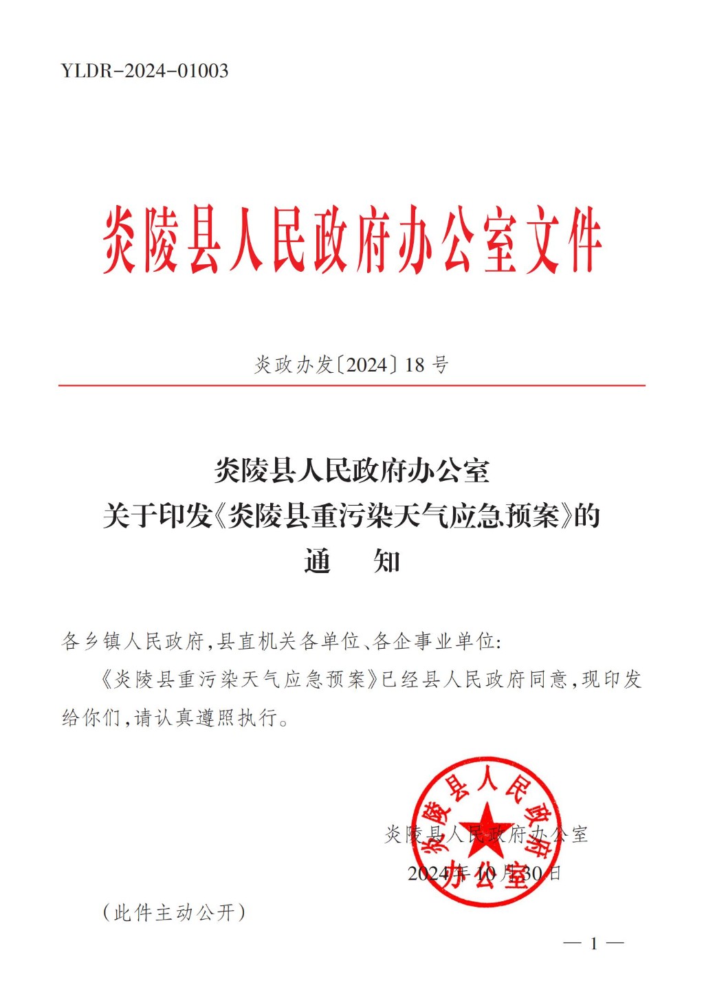 炎陵县人民政府办公室关于印发《炎陵县重污染天气应急预案》的通知