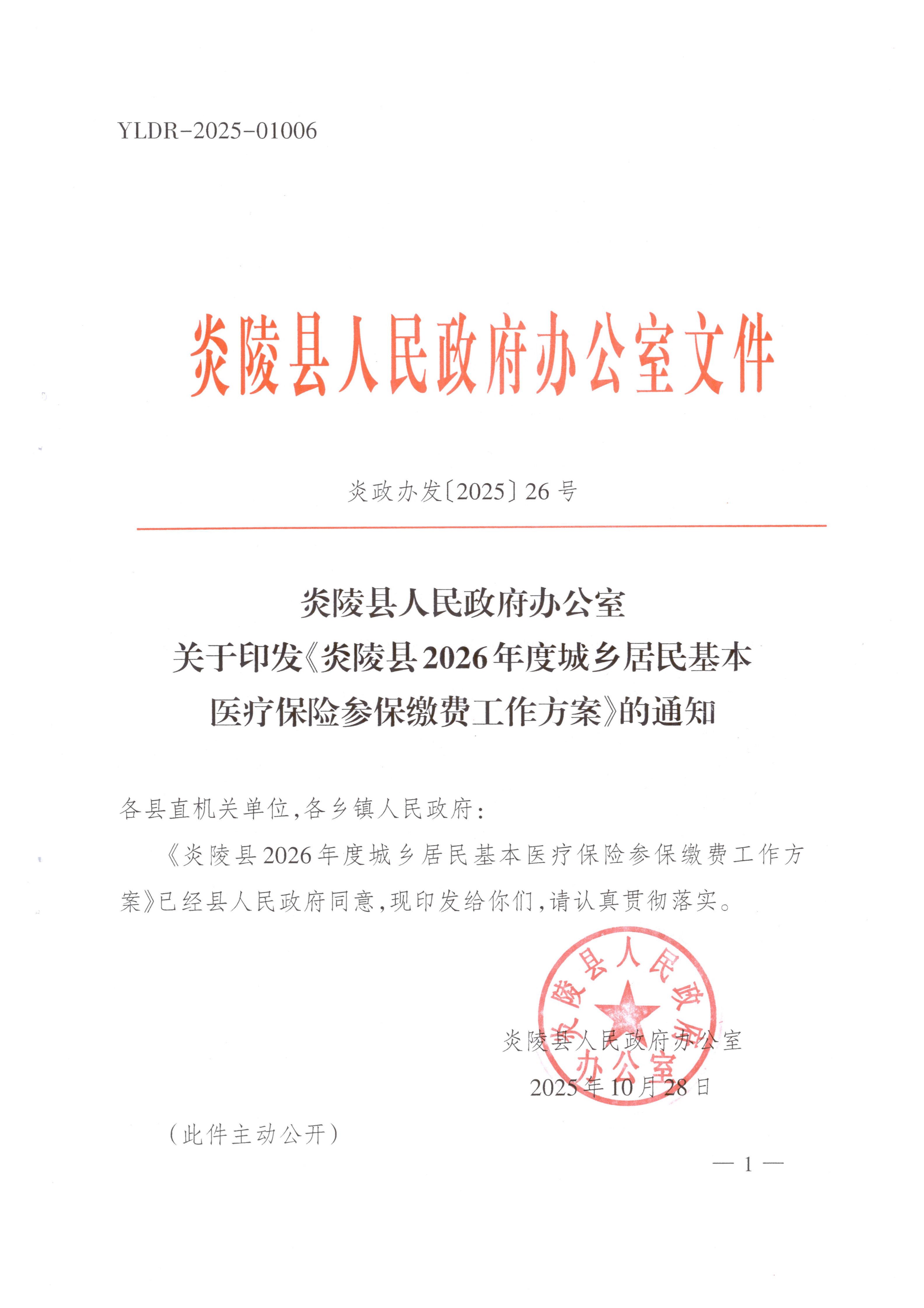 炎陵县人民政府办公室关于印发《炎陵县2026年度城乡居民基本医疗保险参保缴费工作方案》的通知