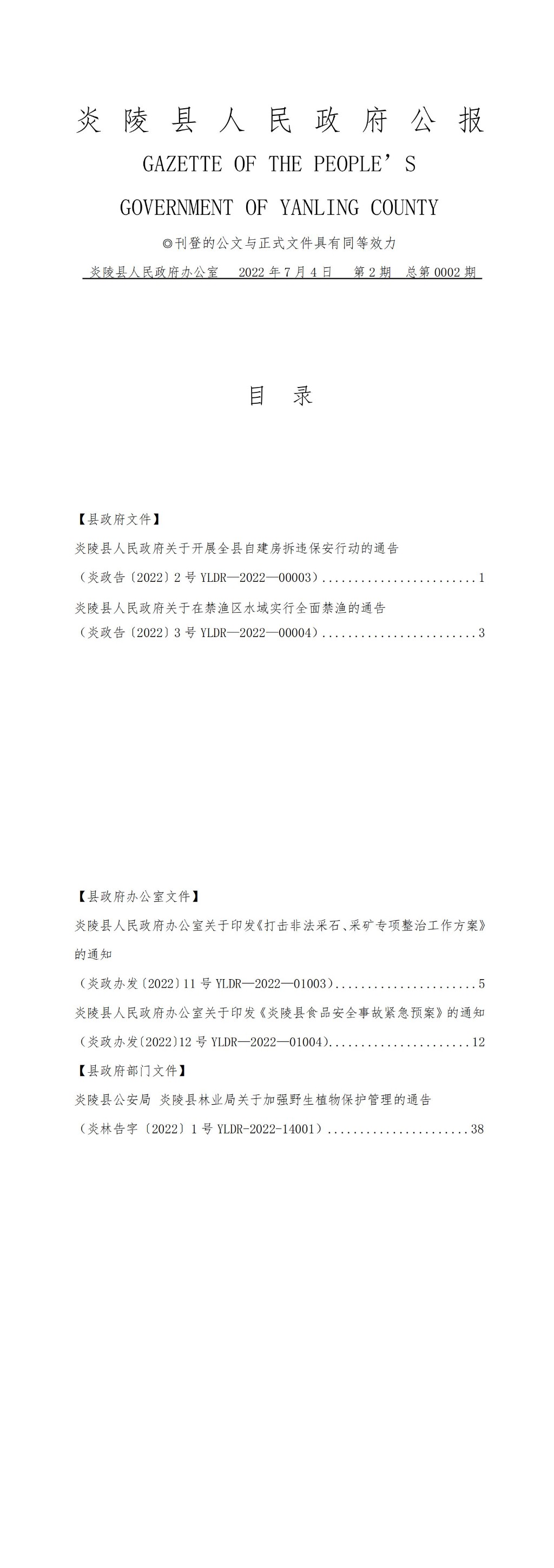政府公报下载:炎陵县人民政府公报2022第2期