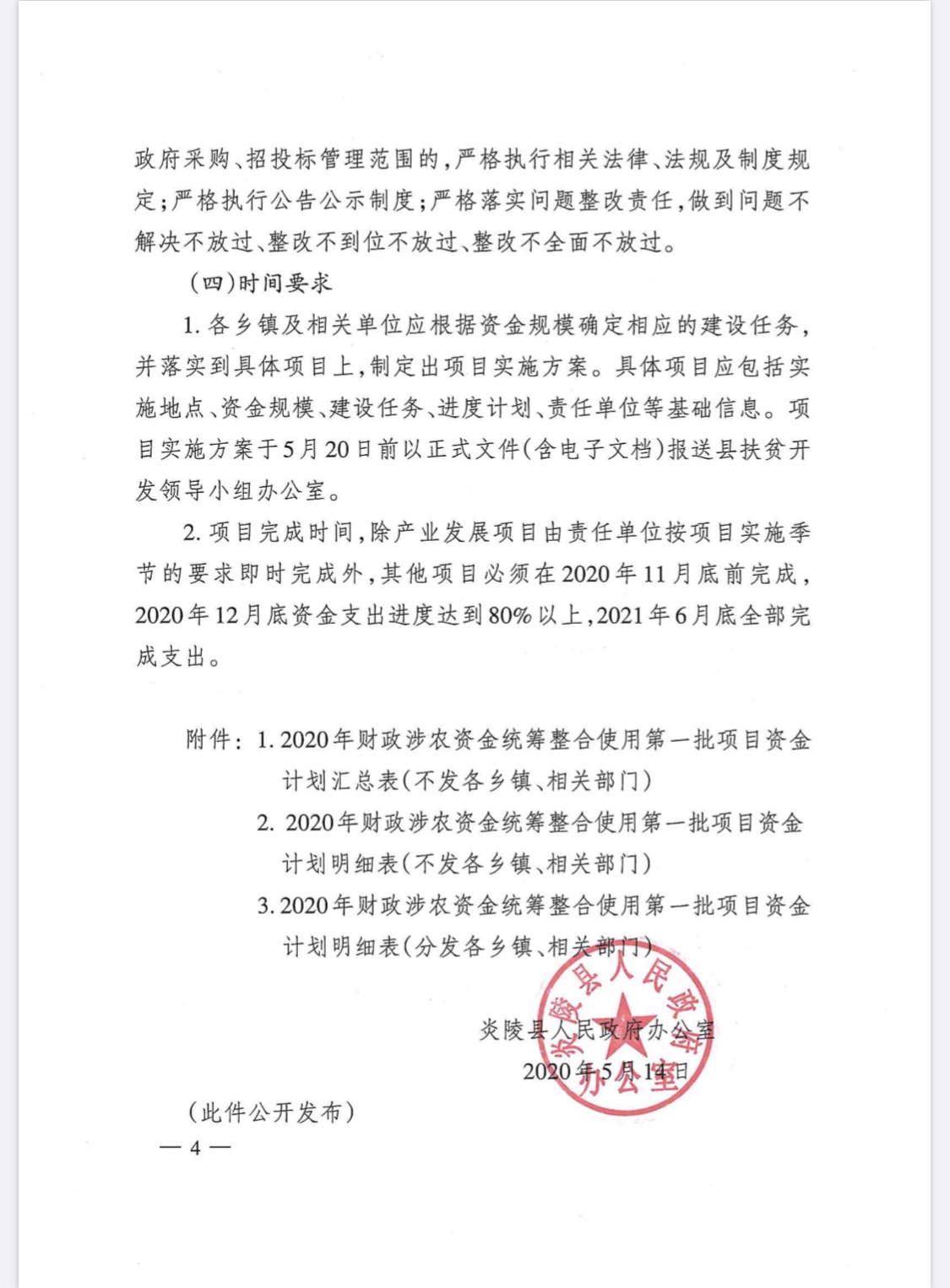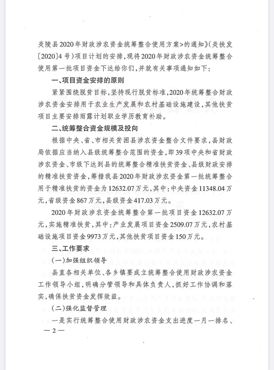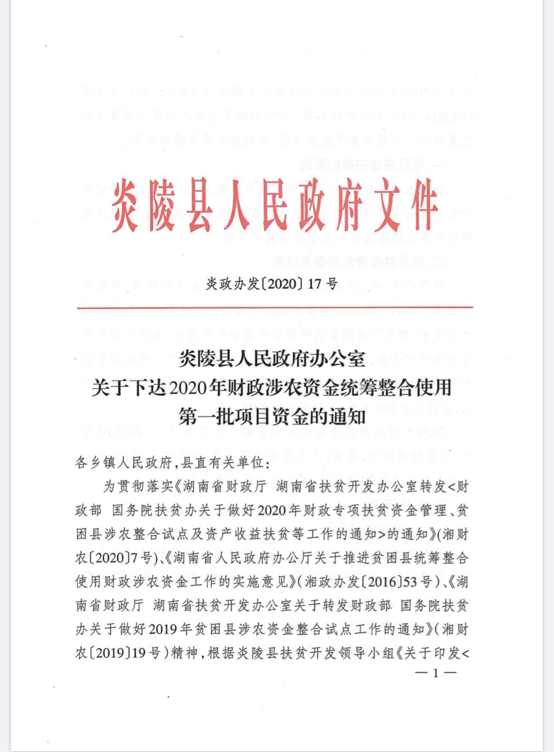 文件下载:关于下达2020年财政涉农资金统筹整合使用第一批项目资金的通知--炎政办发【2020】17号