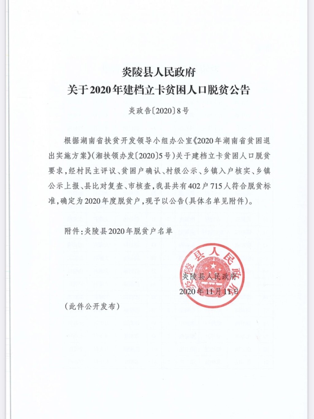 附件下载:炎陵县人民政府关于2020年建档立卡贫困户人口脱贫公告