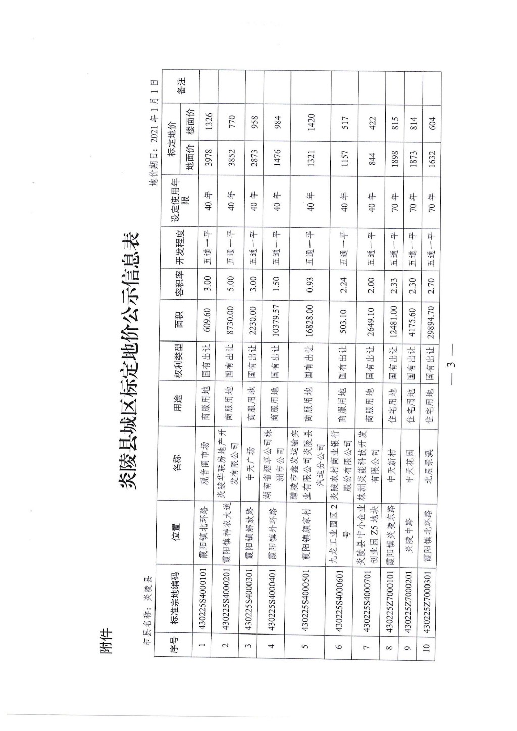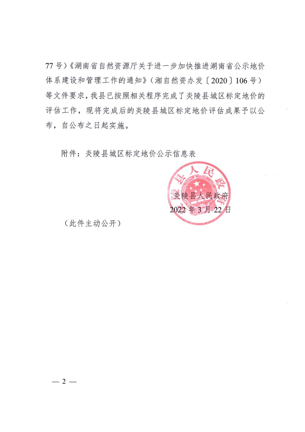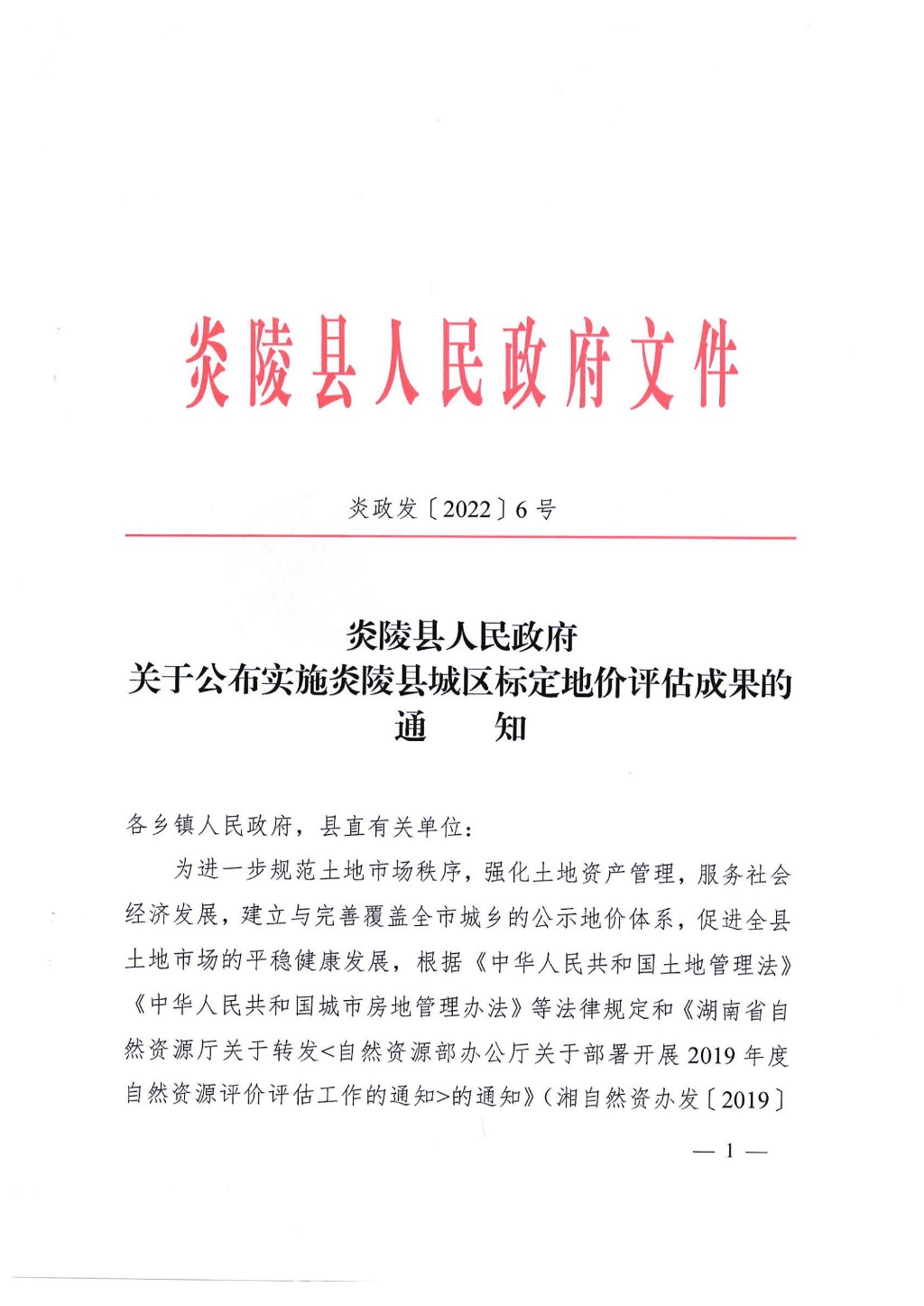 炎陵县人民政府关于公布实施炎陵县城区标定低价评估成果的通知