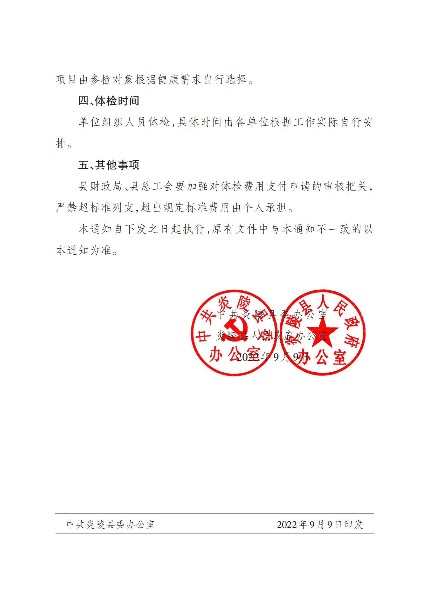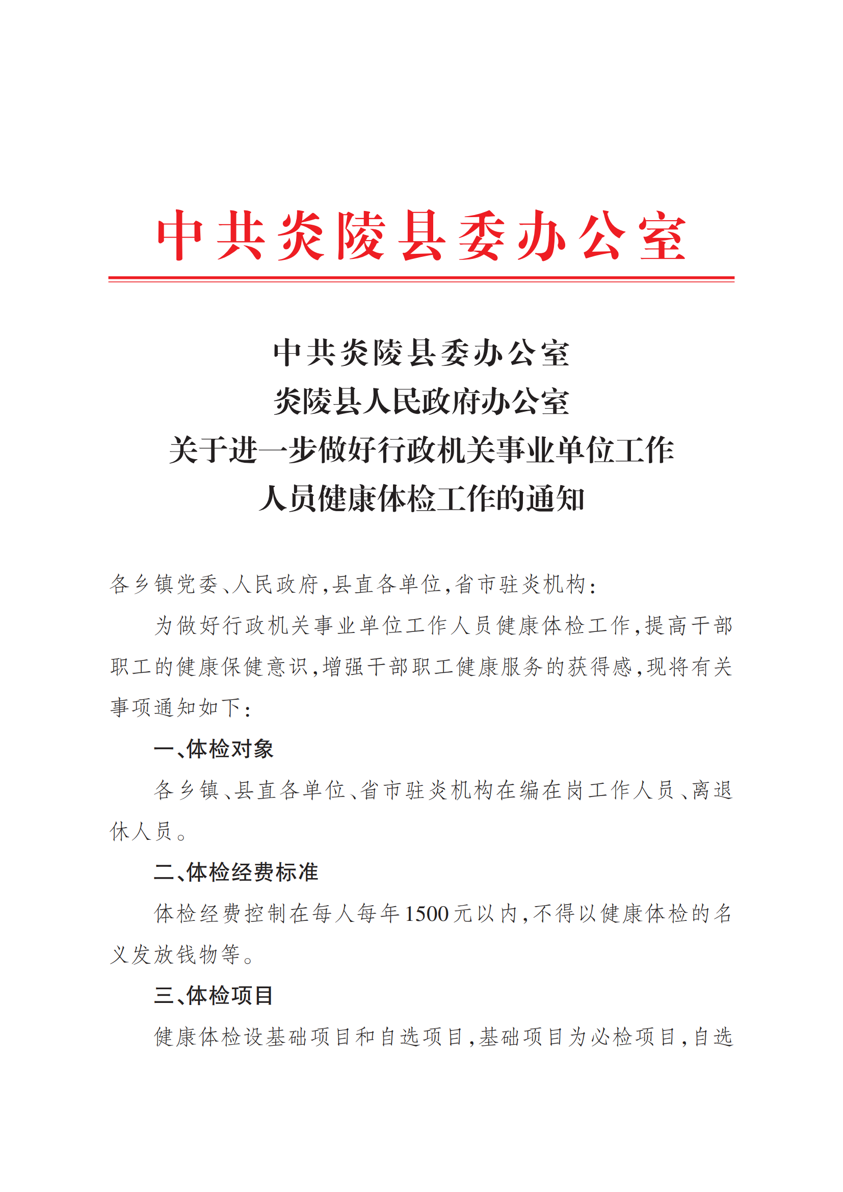 中共炎陵县委办公室炎陵县人民政府办公室关于进一步做好行政机关事业单位工作人员健康体检工作的通知