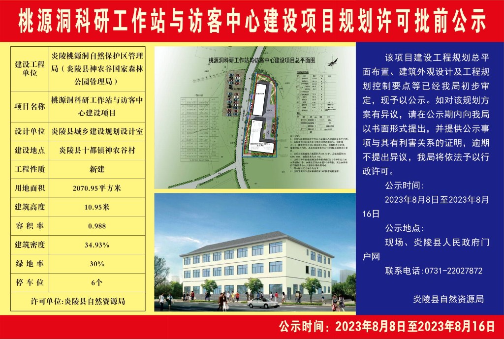 桃源洞科研工作站与访客中心建设项目规划许可批前公示