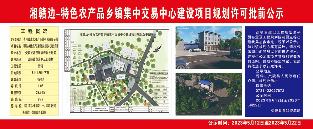 湘赣边-特色农产品乡镇集中交易中心建设项目规划许可批前公示
