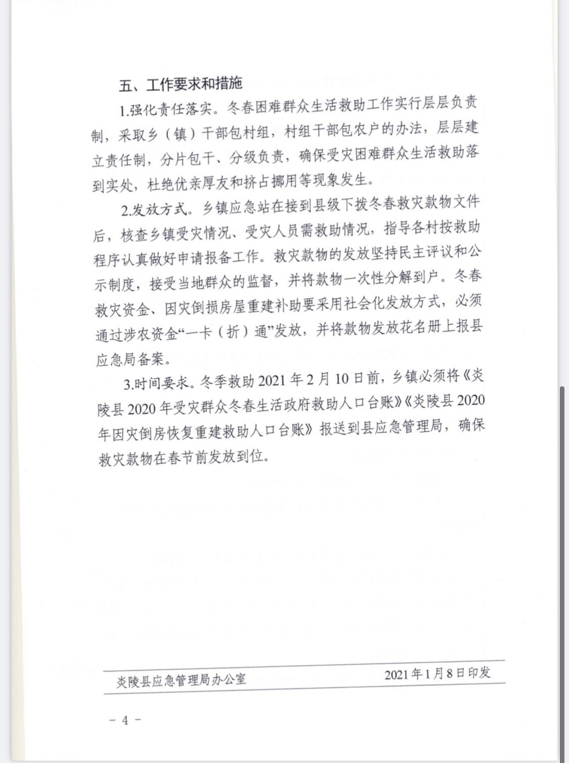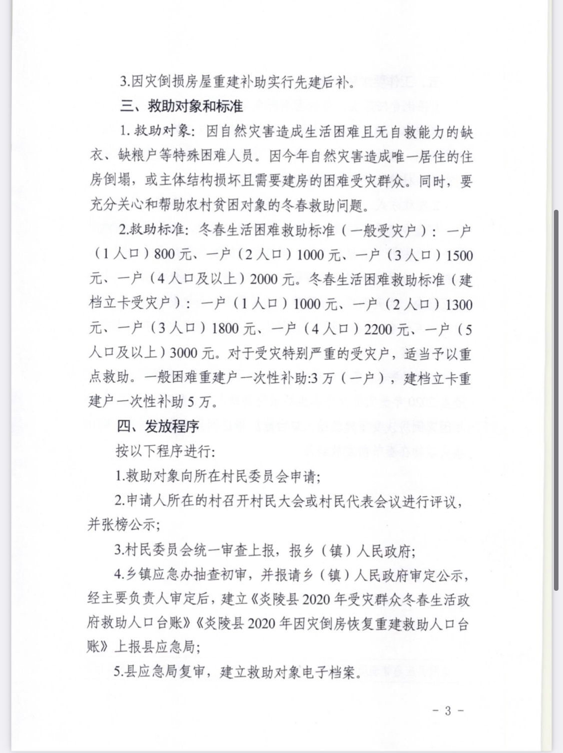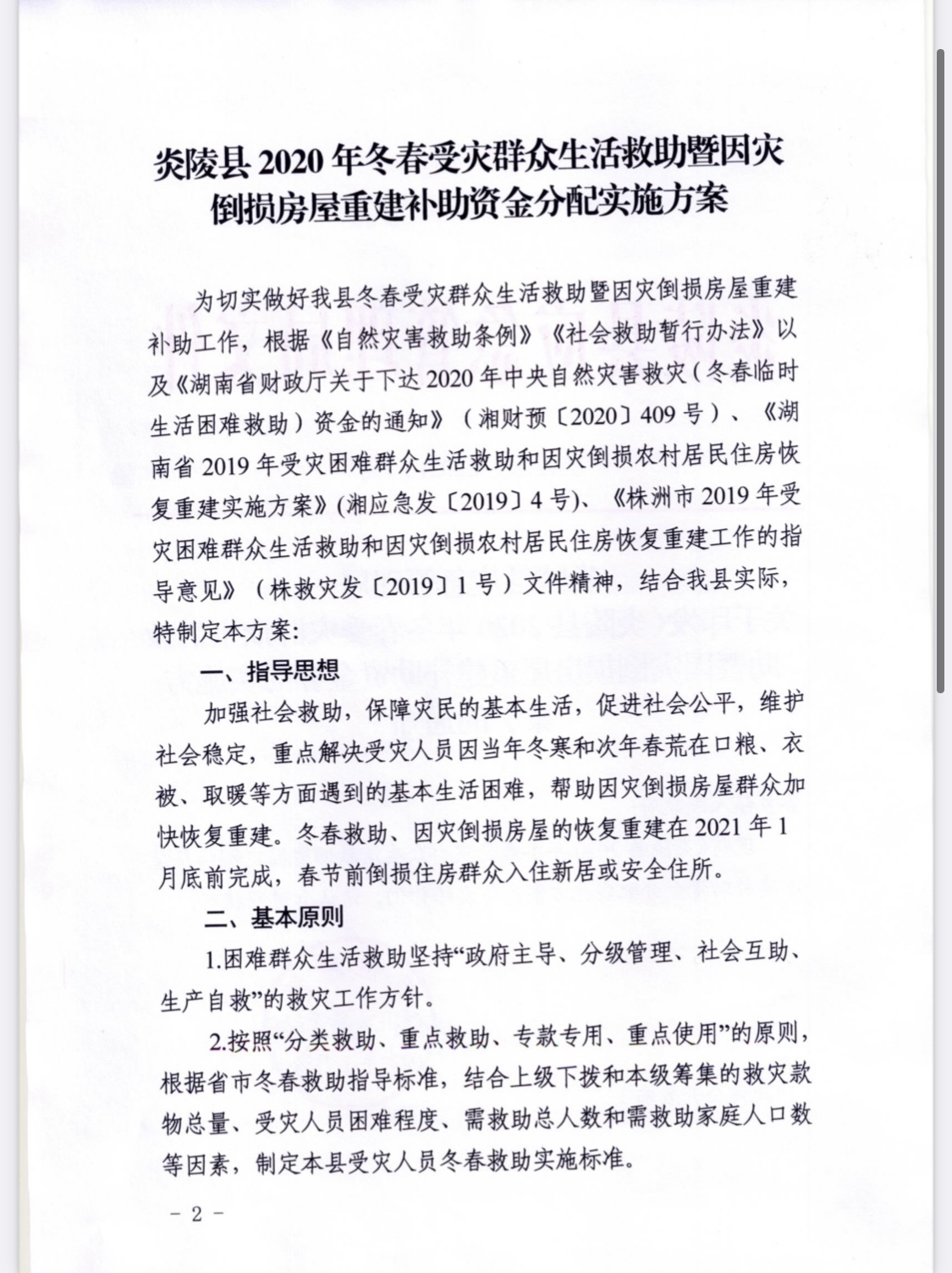 关于印发《炎陵县2020年冬春受灾群众生活求助暨因灾倒损房屋重建补助资金分配实施方案》的通知