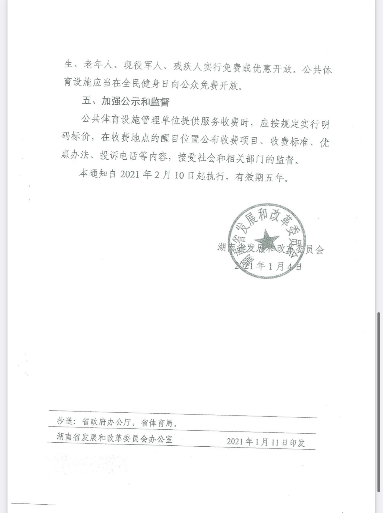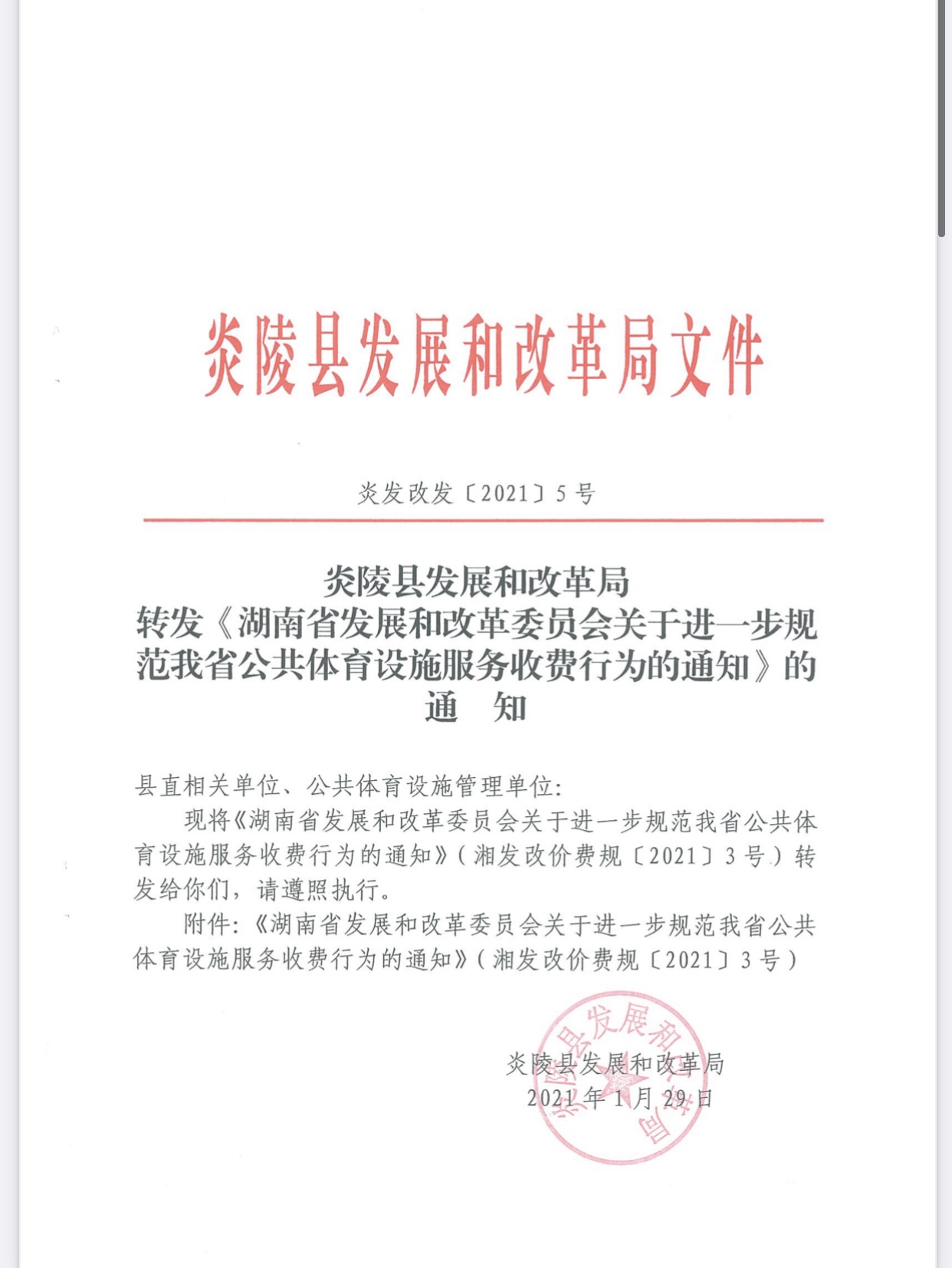 文件下载:炎发改发【2021】5号转发《湖南省发展和改革委员会关于进一步规范我省公共体育设施服务收费行为的通知》的通知