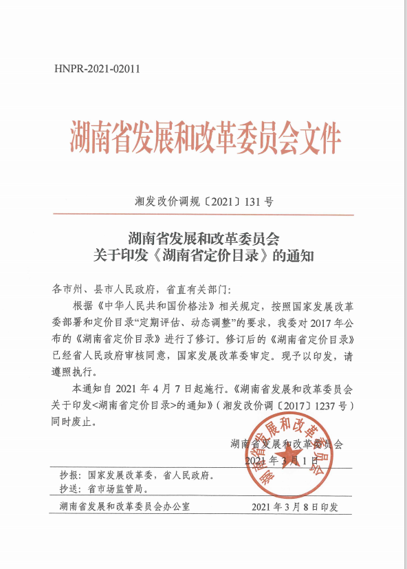 文件下载:湘发改价调规〔2021〕131号 关于印发《湖南省定价目录》的通知(2)