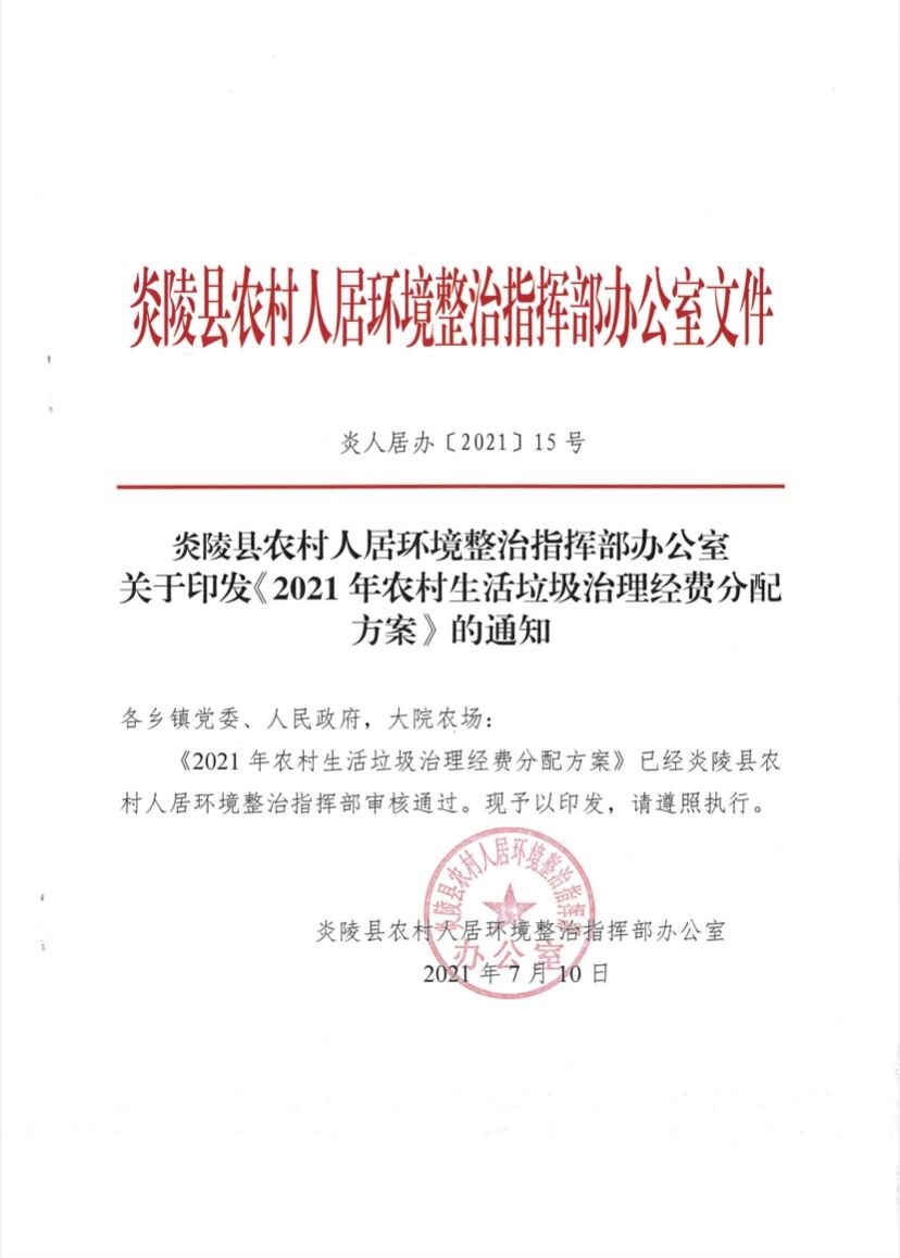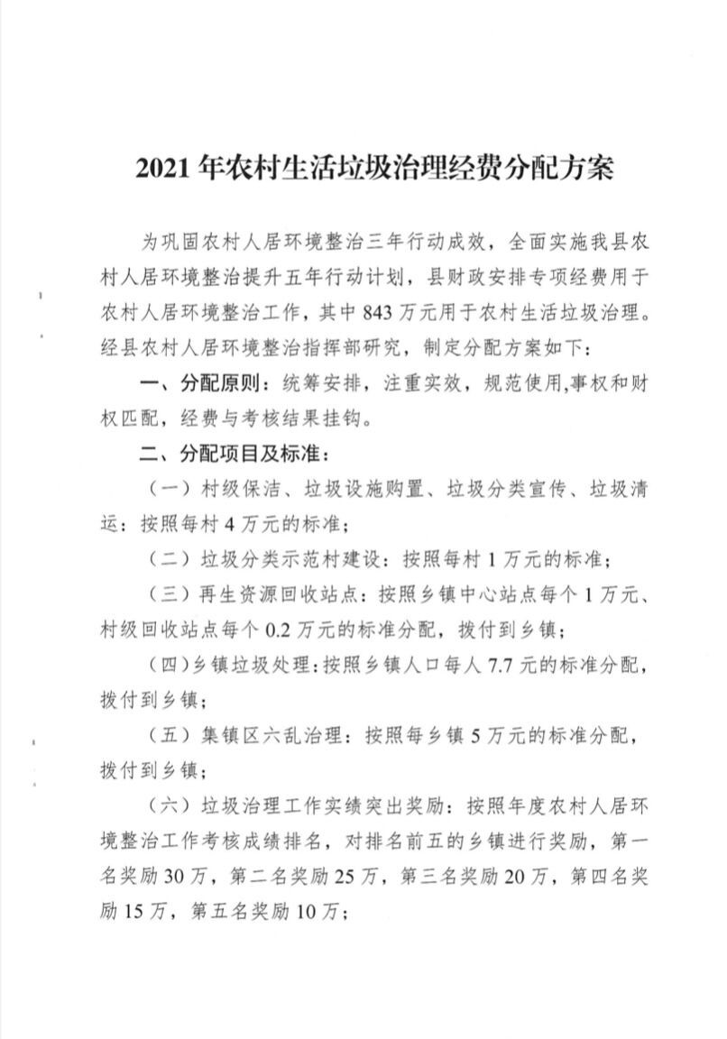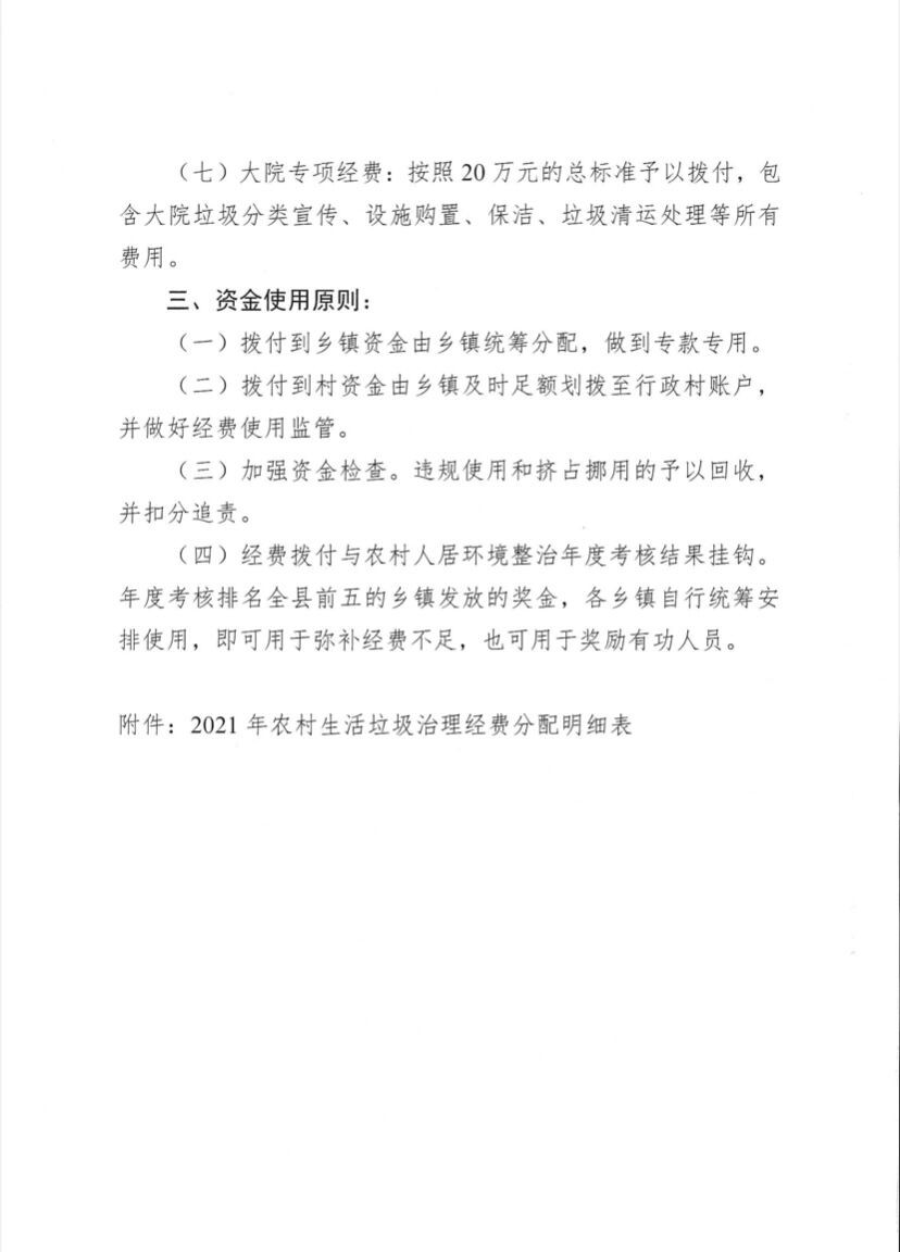 文件下载:关于印发《2021年农村生活垃圾治理经费分配方案》的通知