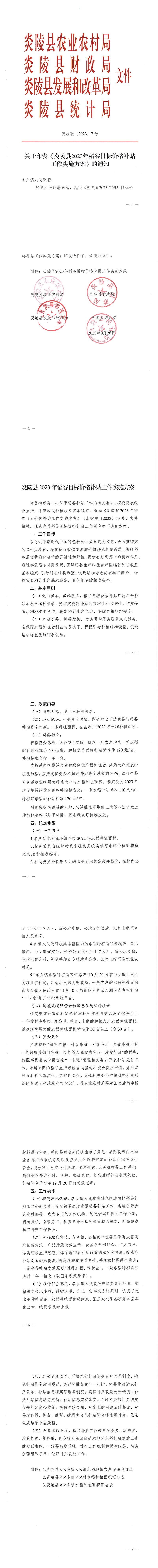 文件下载:关于印发《炎陵县2023年稻谷目标价格补贴工作实施方案》的通知