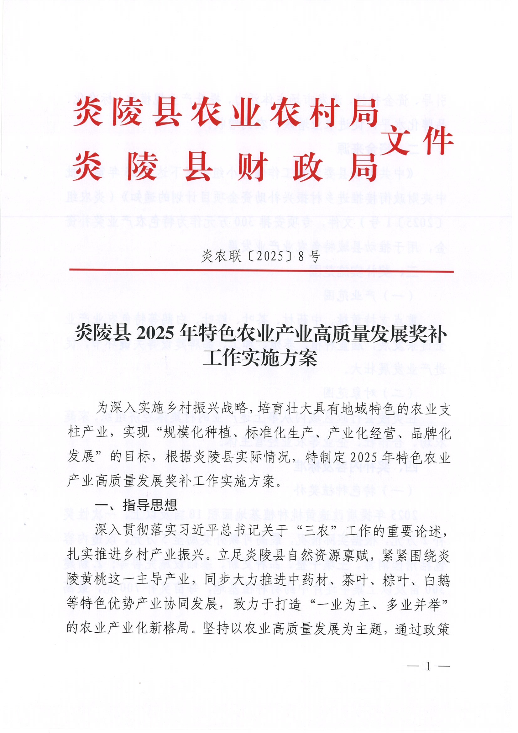文件下载:炎陵县2025年特色农业产业高质量发展奖补工作实施方案.PDF