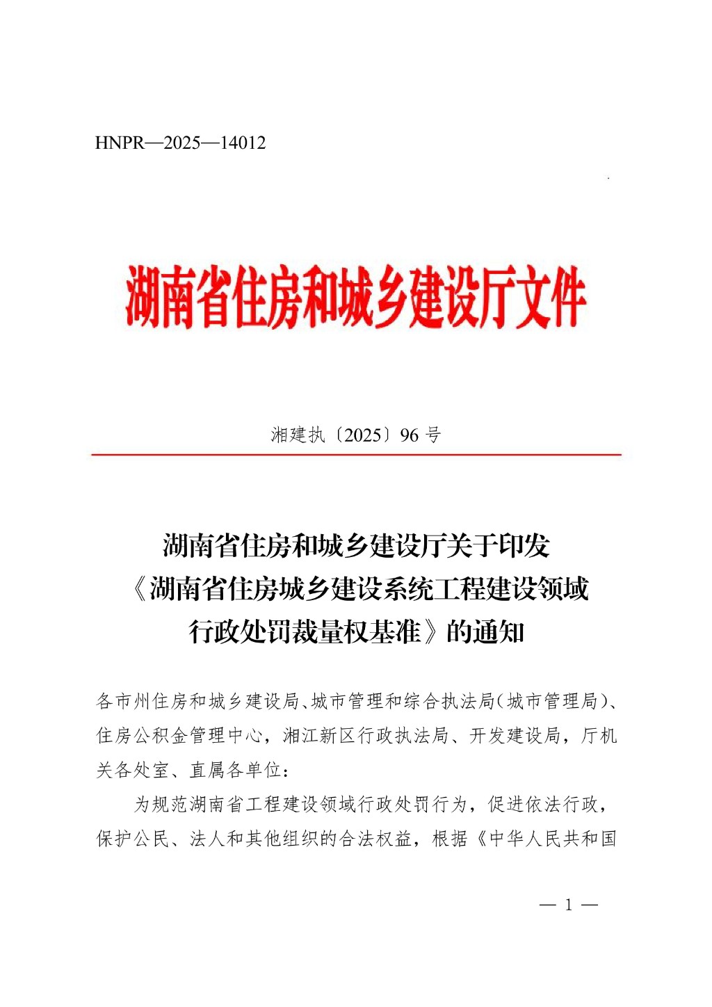 关于转发湖南省住房和城乡建设厅关于印发《湖南省住房城乡建设系统工程建设领域行政处罚裁量权基准》的通知