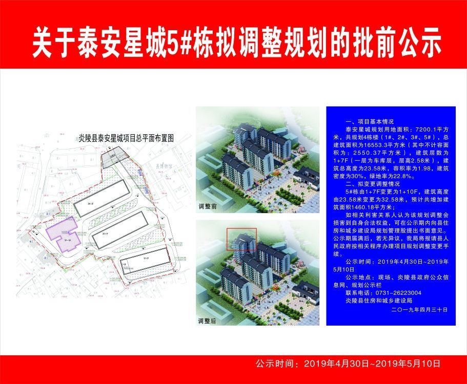 关于泰安星城5#栋拟调整规划的批前公示
