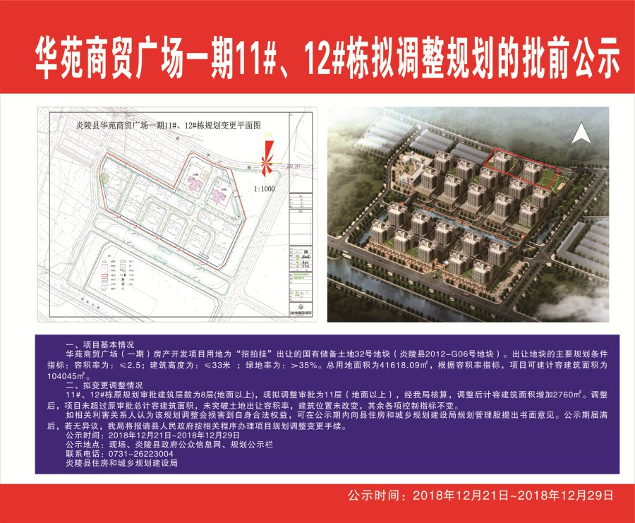 华苑商贸广场 一期11#、12#栋拟调整规划批前公示