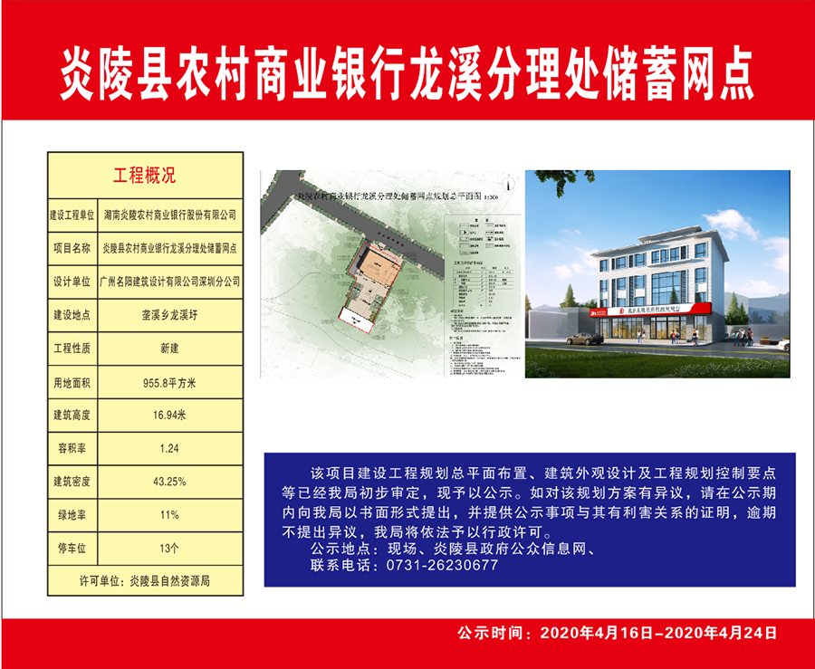 炎陵县农村商业银行龙溪分理处储蓄网点公示