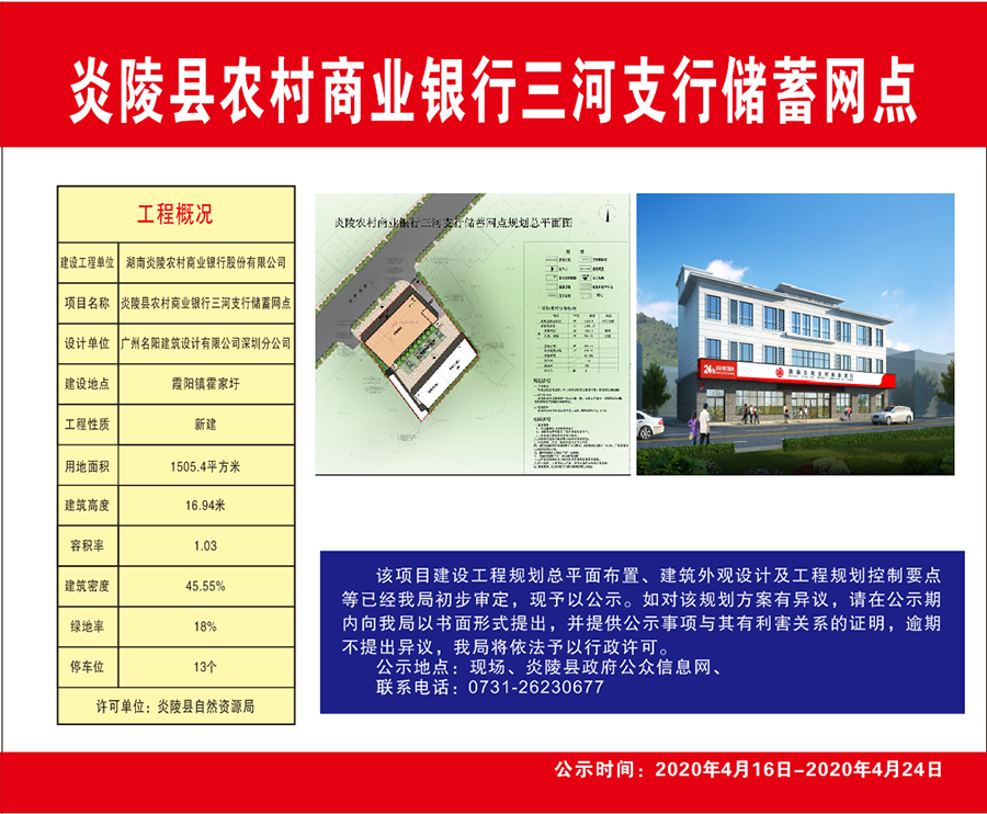 炎陵县农村商业银行三河支行储蓄网点公示