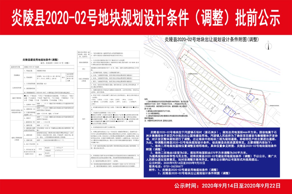 炎陵县2020-02号地块规划设计条件(调整)公示