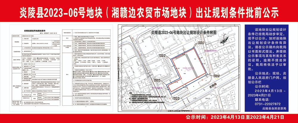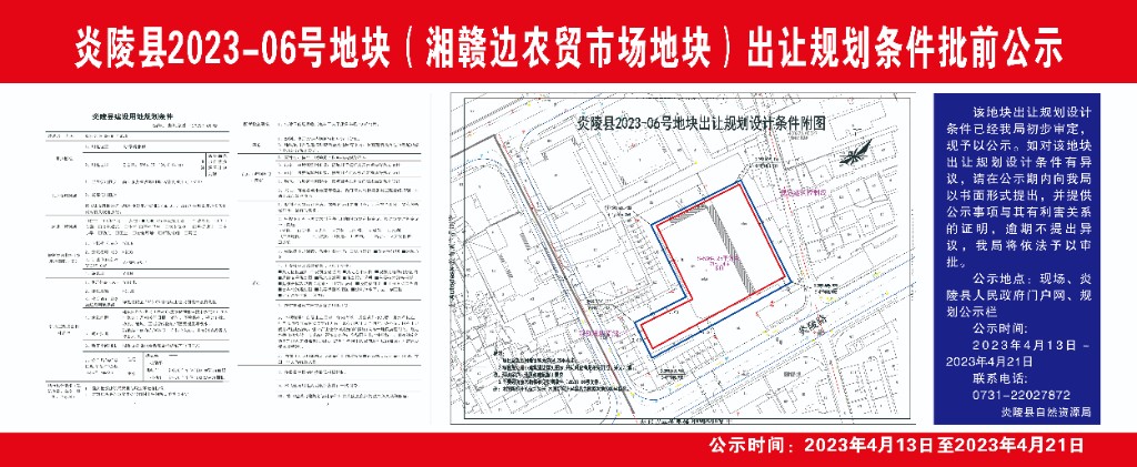 炎陵县2023-06号地块(湘赣边农贸市场地块)出让规划条件批前公示