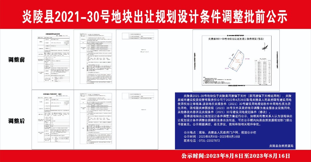 炎陵县2021-30号地块出让规划设计条件调整批前公示
