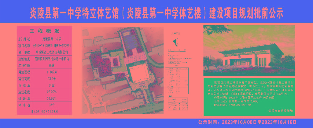 炎陵县第一中学特立体艺馆(炎陵县第一中学体艺楼)建设项目规划批前公示
