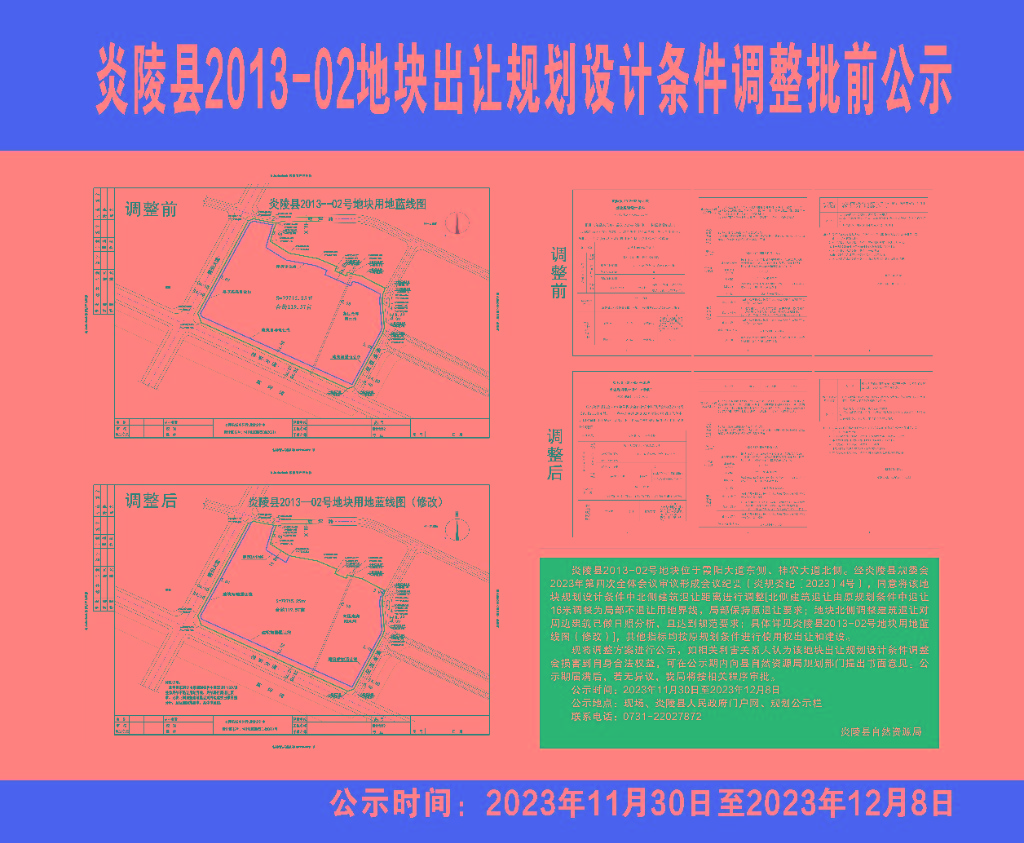 炎陵县2013-02地块出让规划设计条件调整批前公示