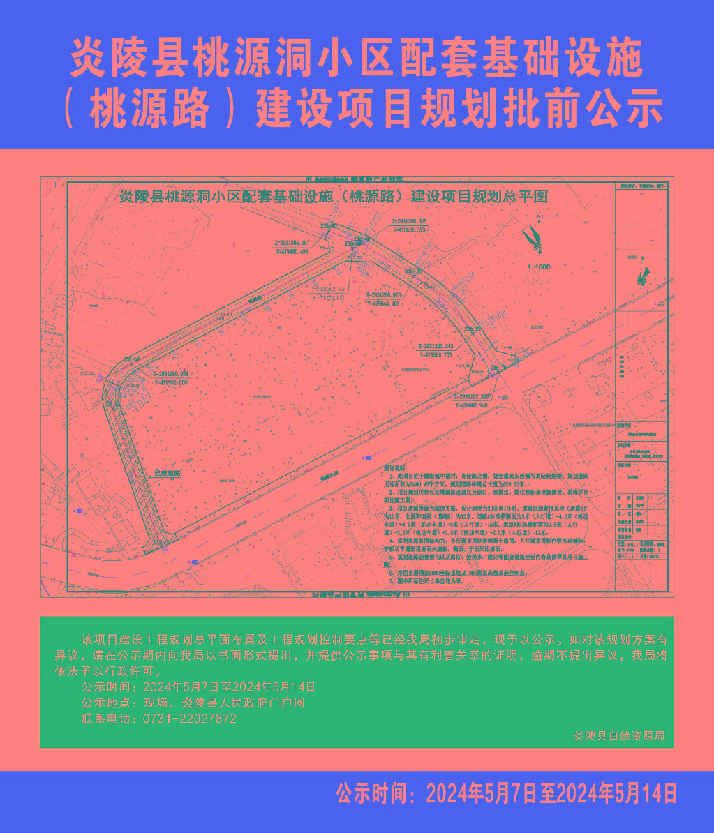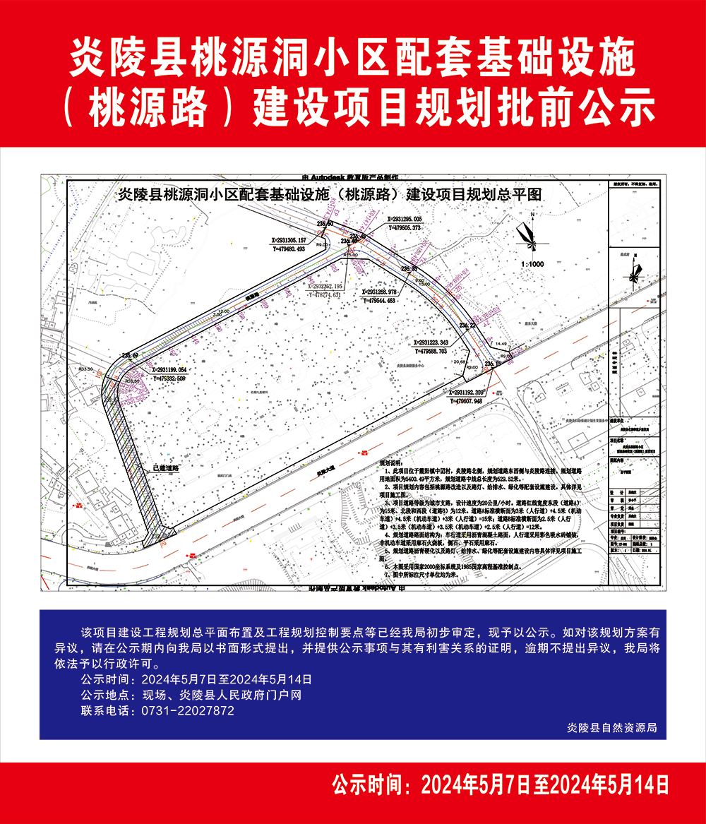 炎陵县桃源洞小区配套基础设施(桃源路)建设项目规划批前公示