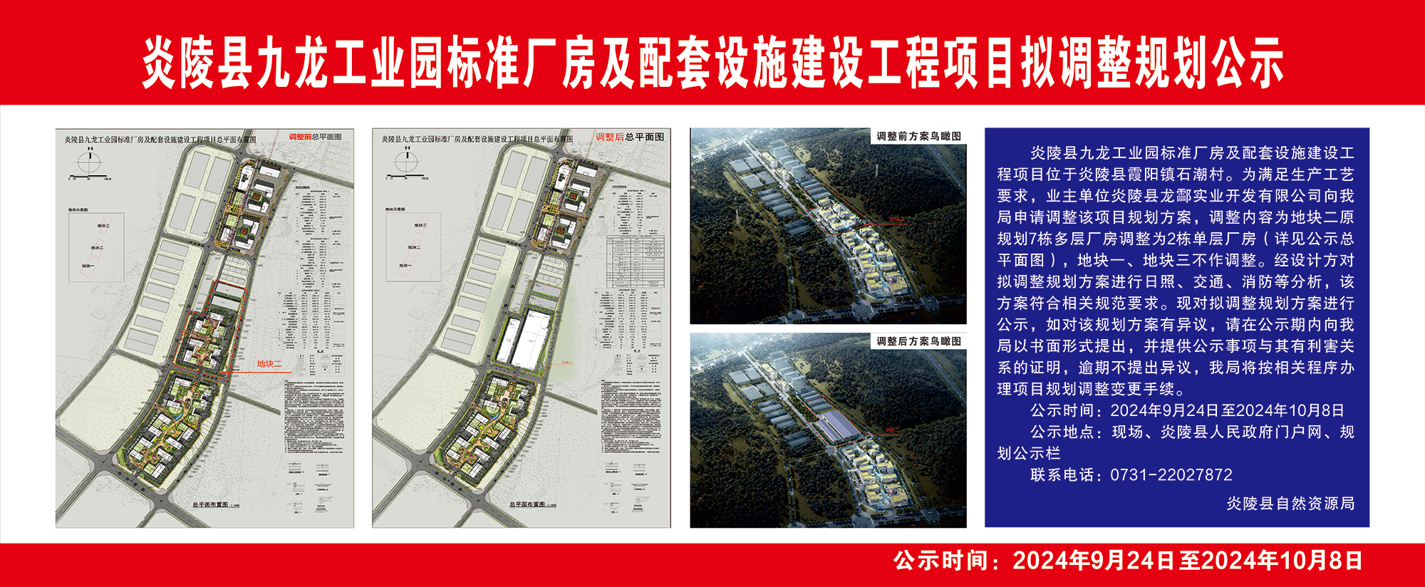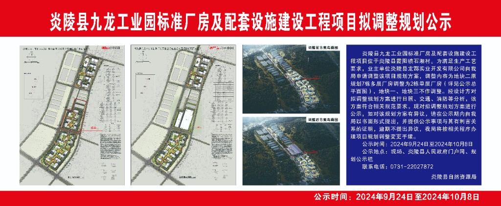 炎陵县九龙工业园标准厂房及配套设施建设工程项目似调整规划公示