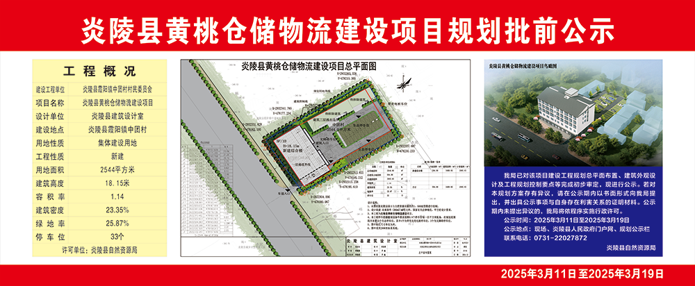 炎陵县黄桃仓储物流建设项目规划批前公示