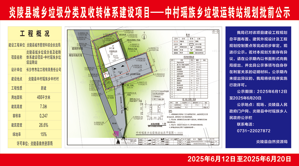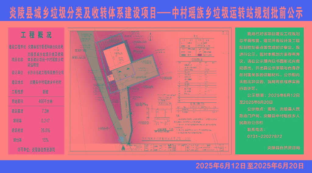 炎陵县城乡垃圾分类及专体系建设项目—中村瑶族乡垃圾运转规划批前公示