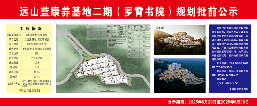 远山蓝康养基地二期(罗霄书院)规划批前公示