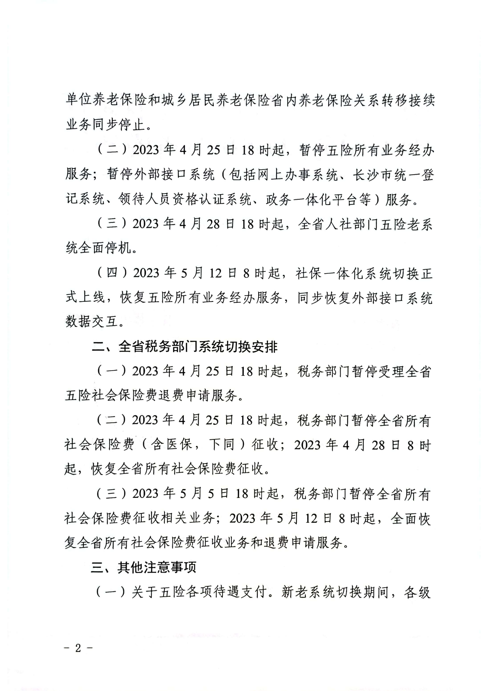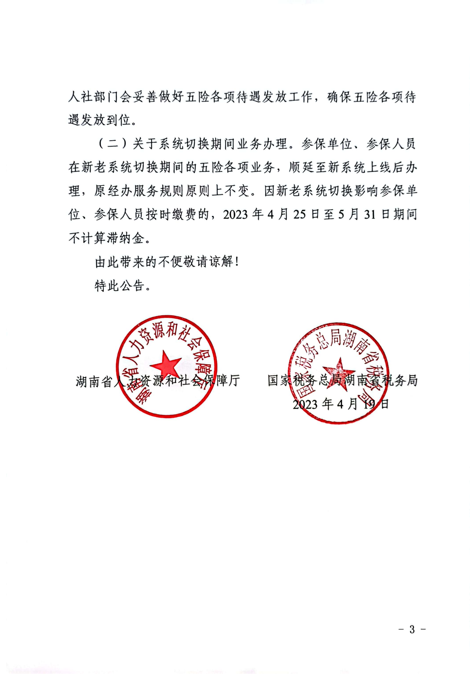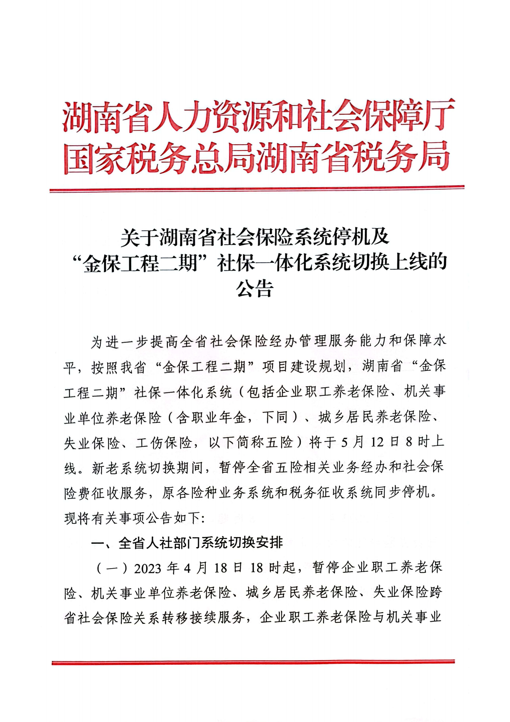 关于湖南省社会保险系统停机及“金保工程二期”社保一体化系统切换上线的公告