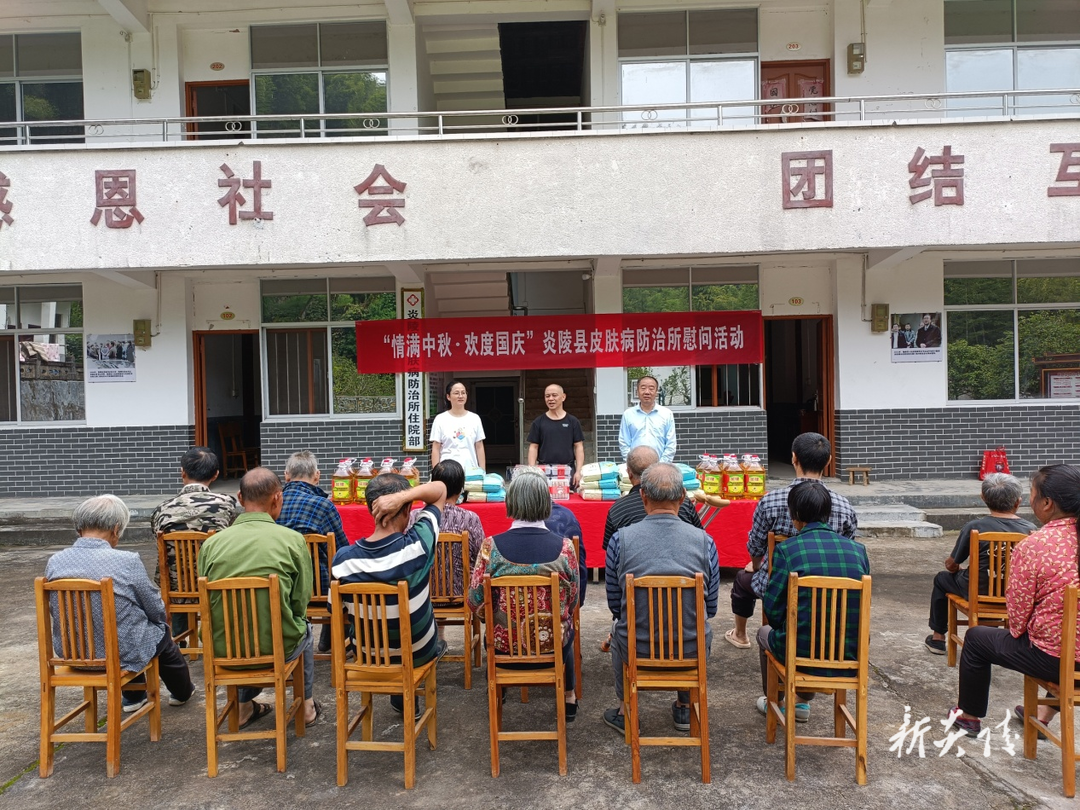 9月28日,炎陵县皮防所来到龙景山康复村开展“情满中秋• 欢度国庆”主题慰问活动。