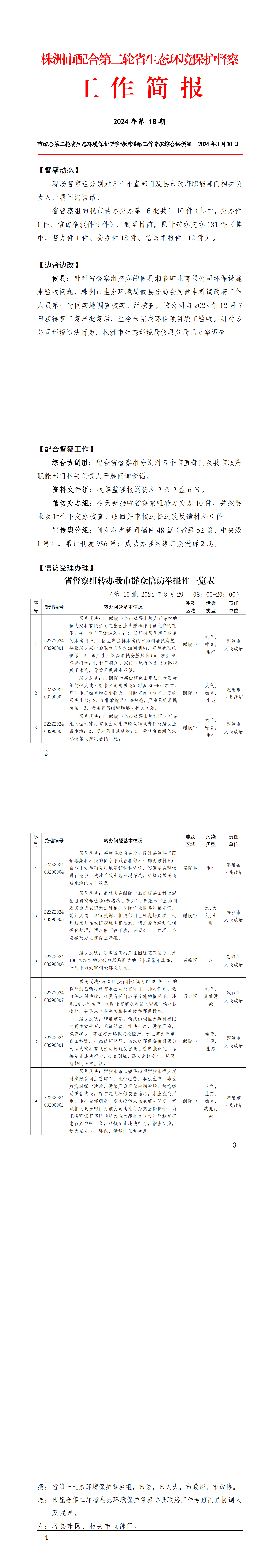 株洲市配合第二轮省生态环境保护督察工作简报