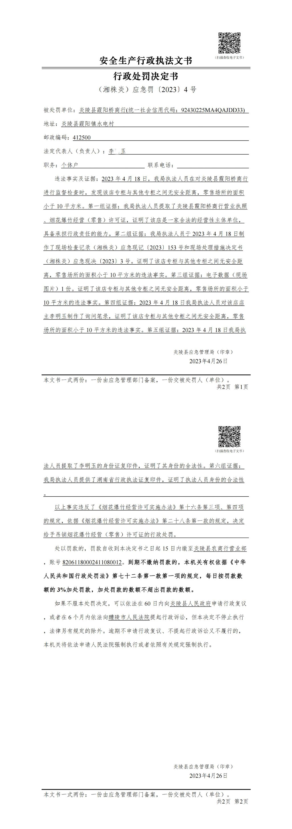 炎陵县应急管理局行政处罚决定书(湘株炎)应急罚〔2023〕4 号