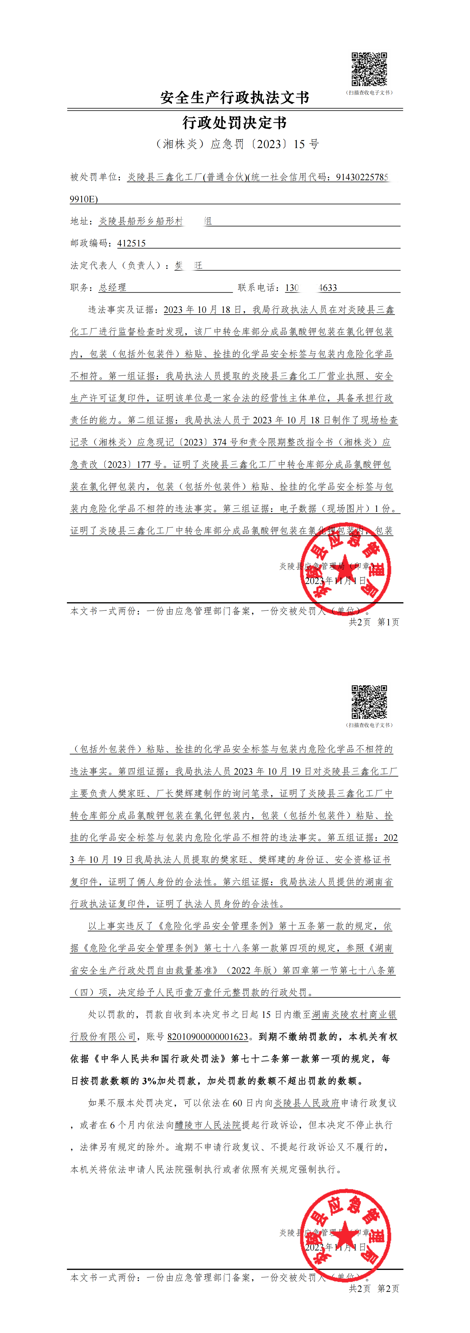 炎陵县应急管理局行政处罚决定书(湘株炎)应急罚〔2023〕15号
