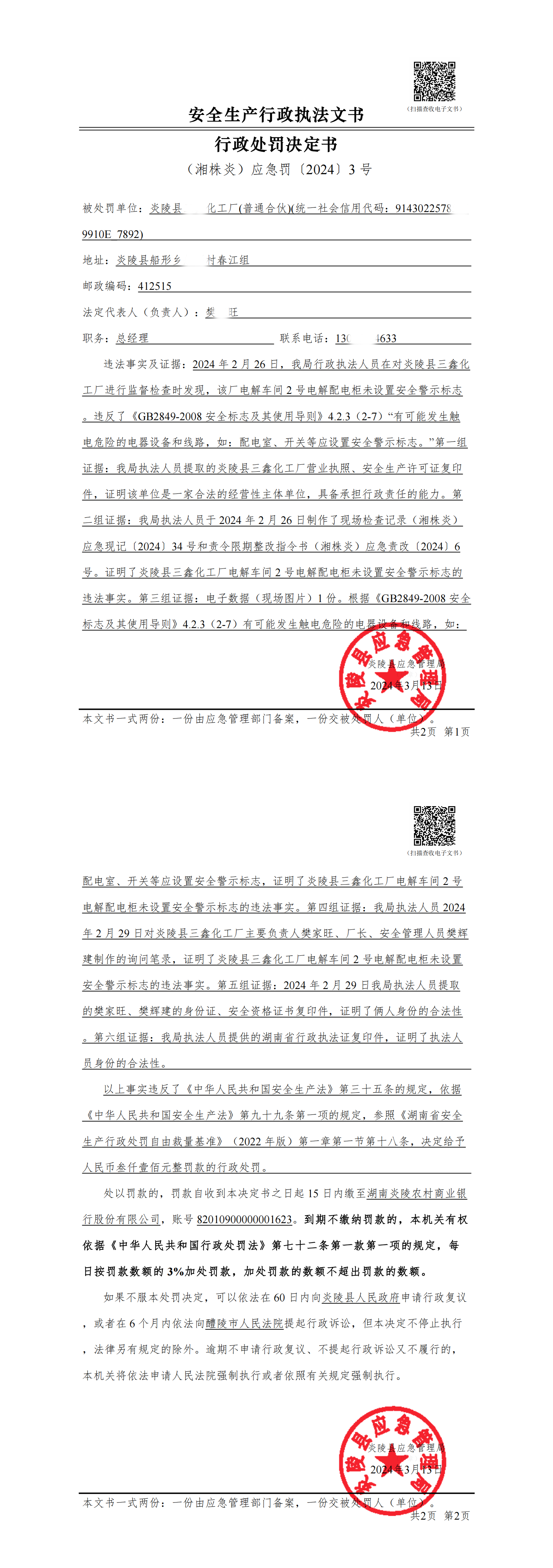 炎陵县应急管理局行政处罚决定书(湘株炎)应急罚〔2024〕3号