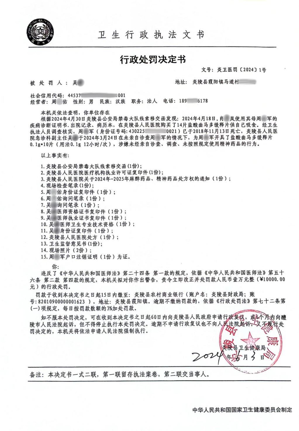 炎陵县卫生健康局行政处罚决定书炎卫医罚〔2024〕1号