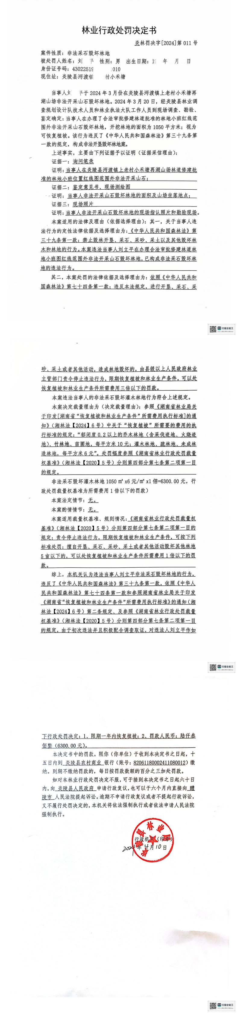 林业行政处罚决定书炎林罚决字〔2024〕第011号