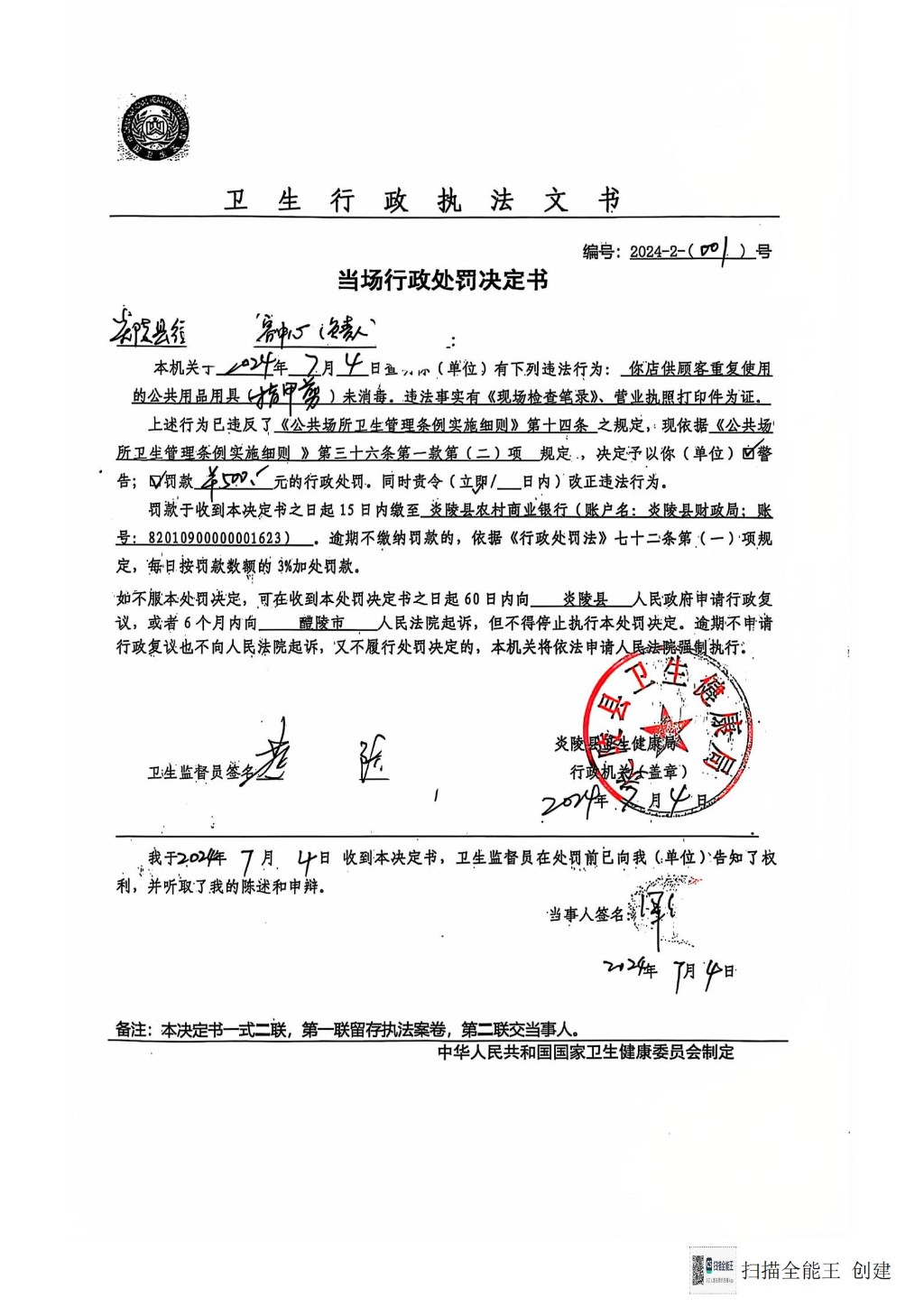 炎陵县卫生健康局行政处罚决定书2024-2-001号