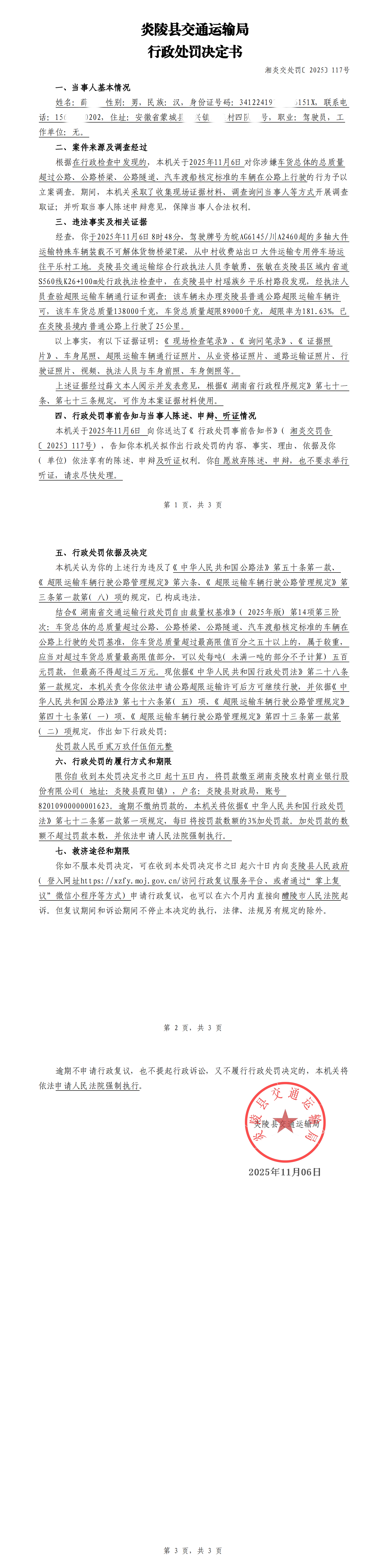 炎陵县交通运输局行政处罚决定书湘炎交处罚〔2025〕117号
