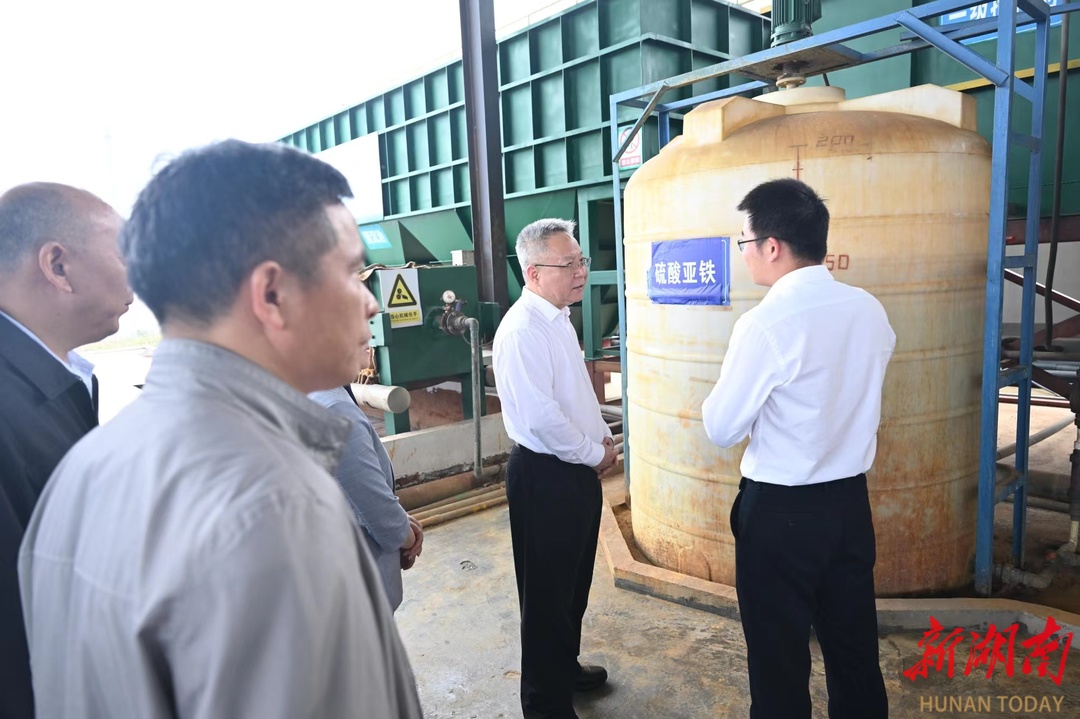 (5月10日,沈晓明在长沙铬盐厂察看一体化污水处理设施,听取历史遗留废渣环境污染问题整改情况介绍。)