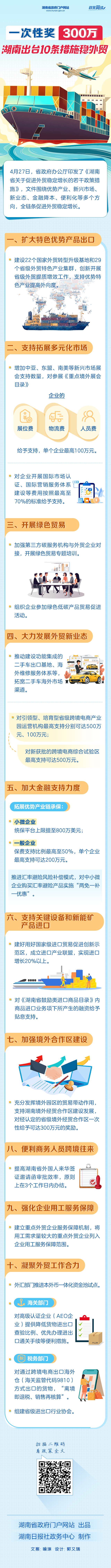 政策简读丨一次性奖300万 湖南出台10条措施稳外贸