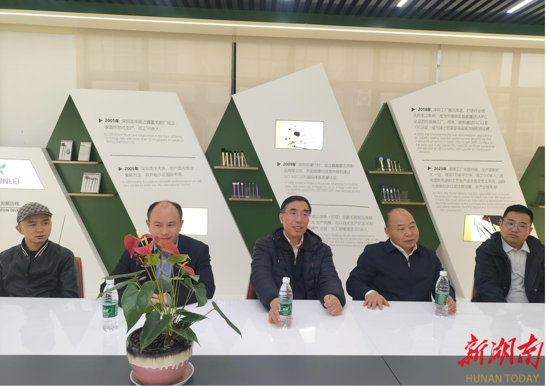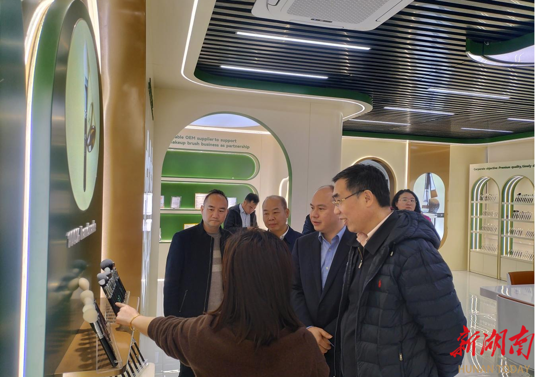 考察组一行先后深入炎陵银太纺织、鑫鑫蕾化妆用具、东泉奇旺等轻工业企业,详细了解了企业的生产工艺、产品研发及市场开拓情况。在银太纺织,考察组对其先进的纺织工艺与产品研发成果给予高度肯定,称赞企业在环保与生产协同发展上的创新实践;在鑫鑫蕾化妆用具生产车间,考察组对工人的精湛手艺和高效的生产线印象深刻,称赞了企业对品质把控的严谨态度;在东泉奇旺,考察组与企业负责人深入交流,对其市场开拓策略提出了专业见解。