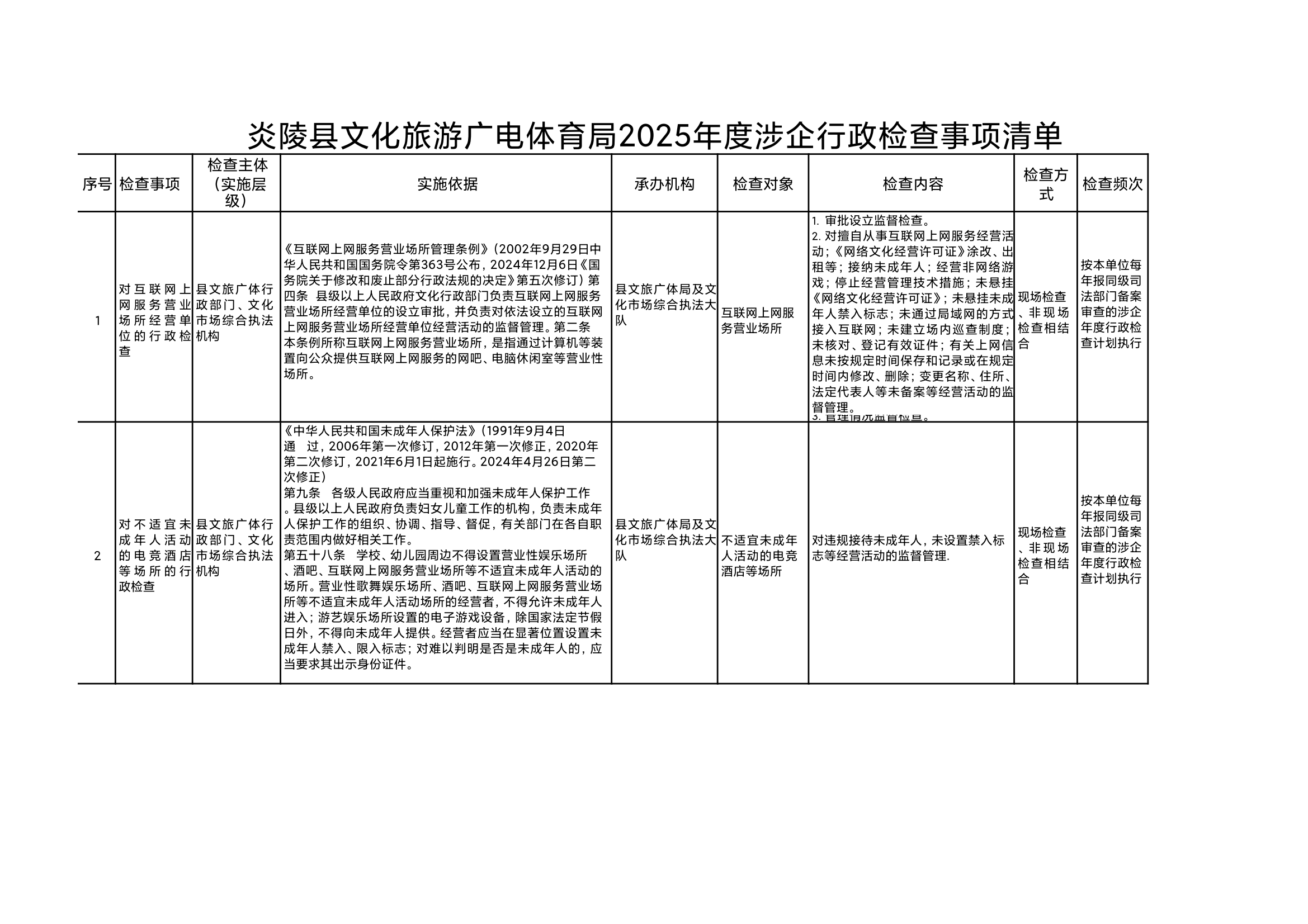 附件:炎陵县文化旅游广电体育局2025年涉企行政检查事项清单